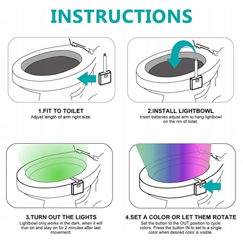 - Якщо підсвічування унітазу перебуває в стані зміни кольору, і ви хочете встановити його як один колір, натисніть кнопку один раз, тоді воно залишатиметься вибраним кольором і буде такого ж кольору протягом ночі на туалеті світло запрацює наступного разу. Якщо ви хочете змінити колір, натисніть його ще раз, щоб відновити зміну кольорів.
