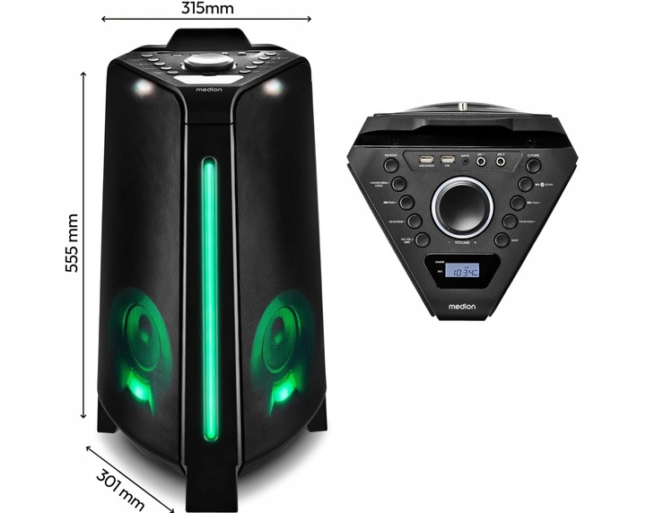 мобільний динамік з багатьма функціями та чудовим дизайном завдяки портативному динаміку партії Medion MD 43552 Ви можете вибрати місце наступної церемонії. Сильний бас день народження, інтимний вечір караоке.