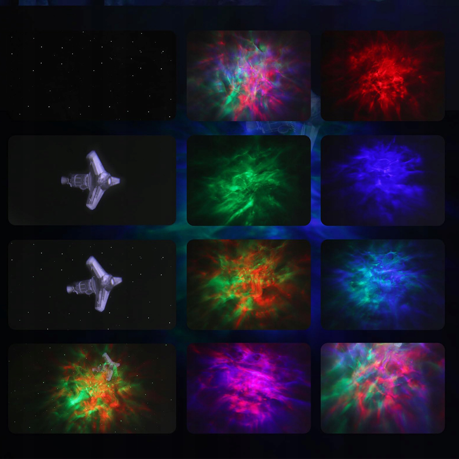 ✨ 【поєднання багатьох конструкцій зірок світильників (завжди вмикається, швидко дихайте, дихайте повільно) та унікальна графіка космічного корабля. Шаблони туманностей, зірок та космічних кораблів можна вмикати та вимикати індивідуально, а також використані конструкції для створення різних світлових візерунків.