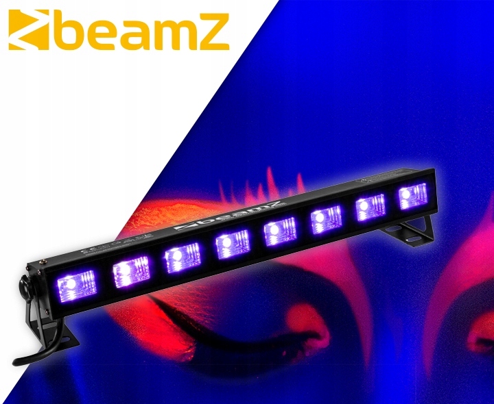 BeamZ BUV93 LED Blacklight UV BAR з високою потужністю 8x3W. За допомогою цієї чорної лампи або ультрафіолетової лампи ви створите цей прекрасний таємничий ефект, у якому світяться білі плафони та чутливі до УФ-променів матеріали. Завдяки високій потужності світлодіодів і параболічних відбивачів досягається дуже широкий діапазон. Легкий корпус гарантує, що BUV93 UV BAR можна використовувати як для стаціонарних, так і для мобільних установок. Завдяки кронштейнам, що входять у комплект, встановлення стає легким.