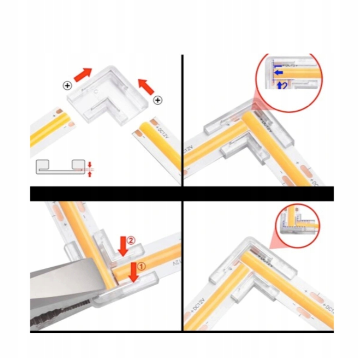 Нарешті для комбінації світлодіодів COB без необхідності пайки. IP20, двосторонній кутовий роз'єм/тип>