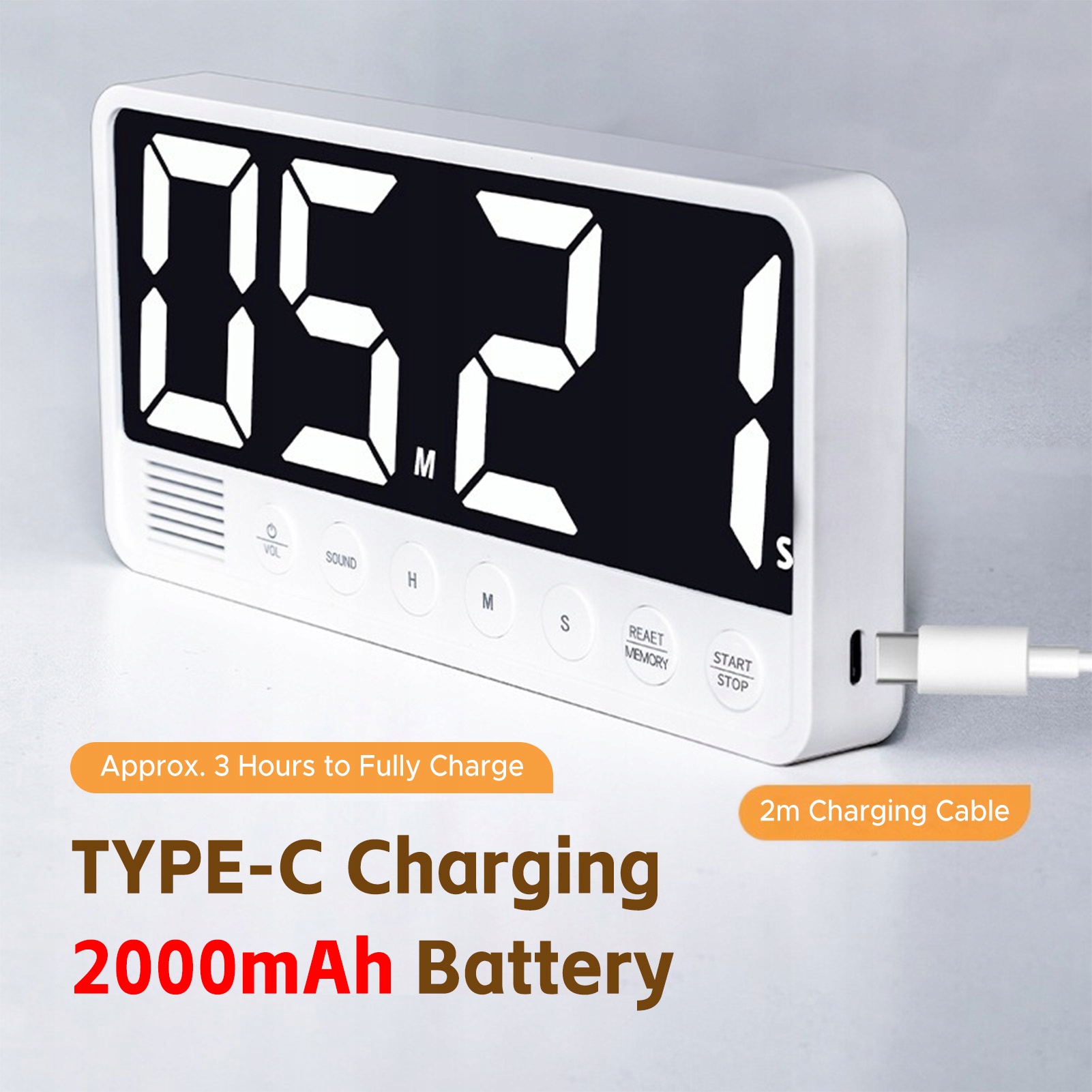 Світлодіодний таймер Великий екран 99HR 59mmin 6 Тома тривоги 3 Спогади 5U