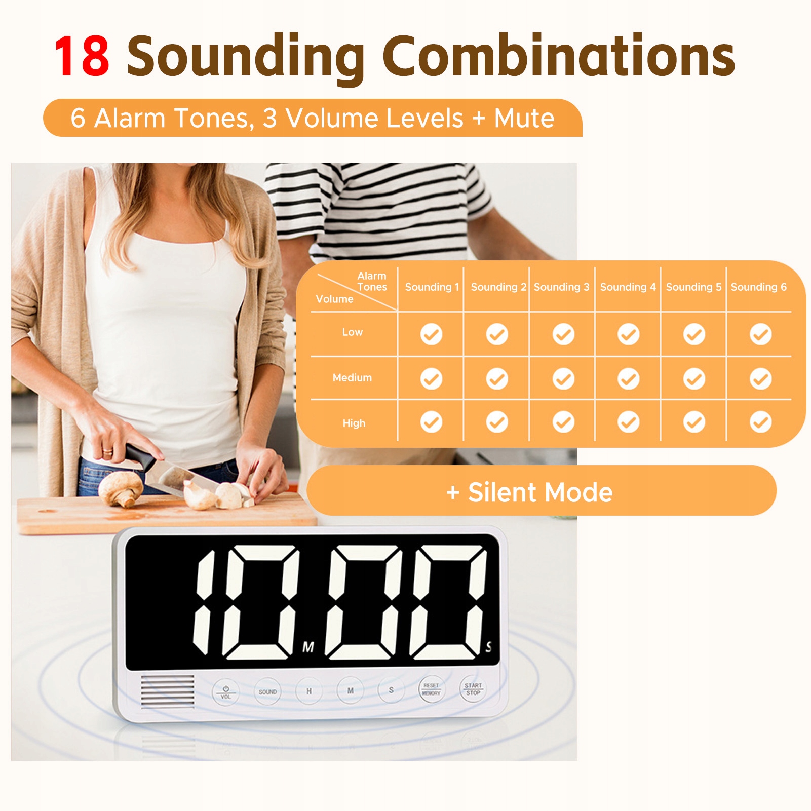 5. Універсальні параметри тривоги: Виберіть 6 різних звуків тривоги та відрегулюйте гучність, щоб відповідати вашим налаштуванням.