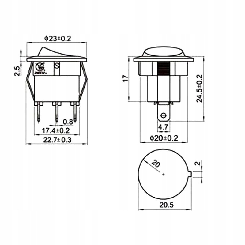 Вимикач зі світлодіодним підсвічуванням 20 мм, чорний корпус