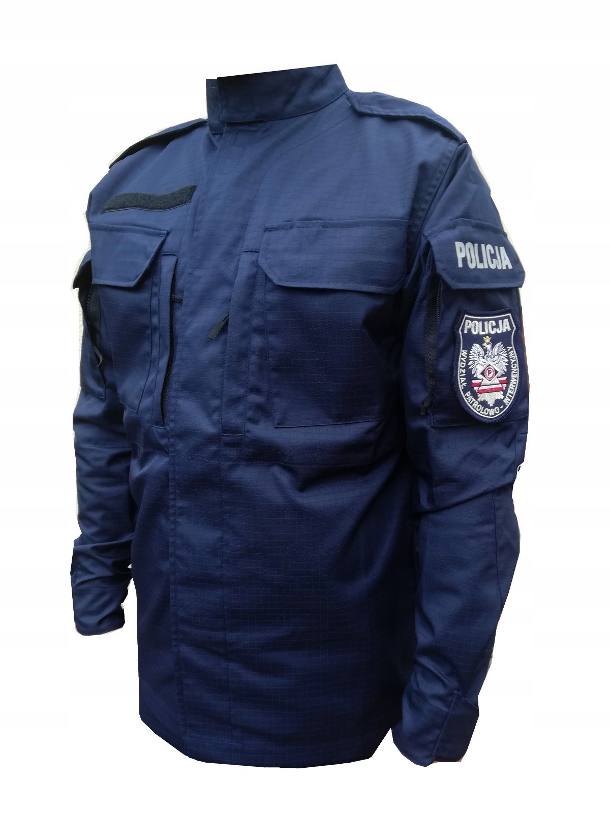 - Матеріал: Толстовка виготовлена з легкої дихаючої тканини ripstop темно-синього кольору, характерної для уніформи силових структур, у тому числі поліції. Цей колір дозволяє офіцерам легко ідентифікувати себе під час навчань і тренувань.
