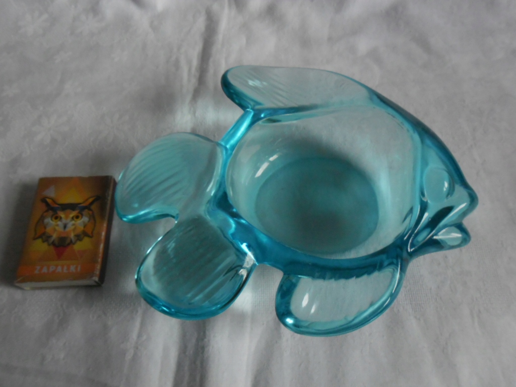 SZKLANA TURKUSOWA RYBA MISECZKA PATERKA MURANO