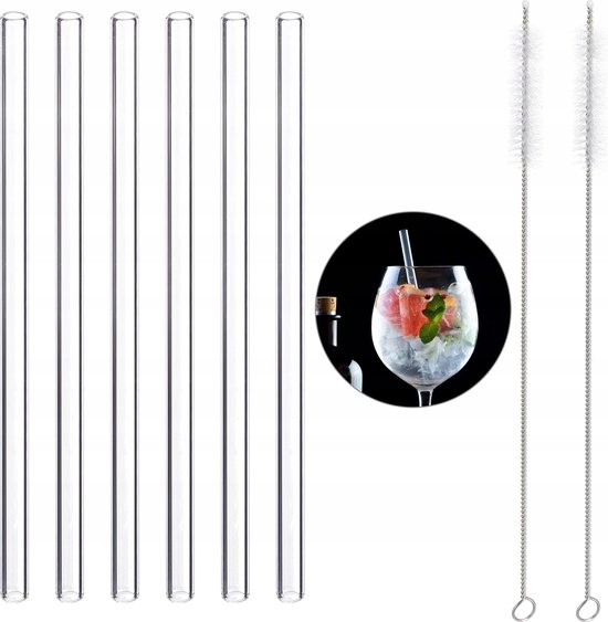 SZKLANE RURKI SŁOMKI DO NAPOJÓW CIEPŁYCH ZIMNYCH 23cm + 2xCZYŚCIK KPL 6 szt