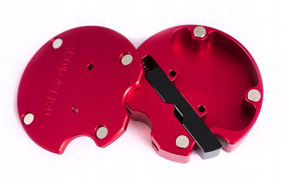 Snuffmaster виготовлений з анодованого алюмінію. Складається з нижньої частини з нюховою ємністю і механізмом дозування, і верхньої кришки, закривається 4-ма сильними магнітами, що забезпечує зручне використання і гарантує герметичність.