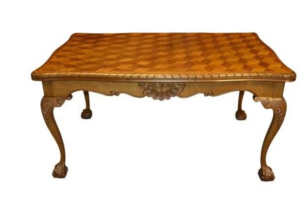 Красивий суцільний стіл Chippendale. Меблі виготовлені з дуба. Меблі мають чудово модельовані форми, вона смачно оформлена. Внутрішньовасть на стільниці. Стільниця розгортається. Використовуваний стан, дуже хороший