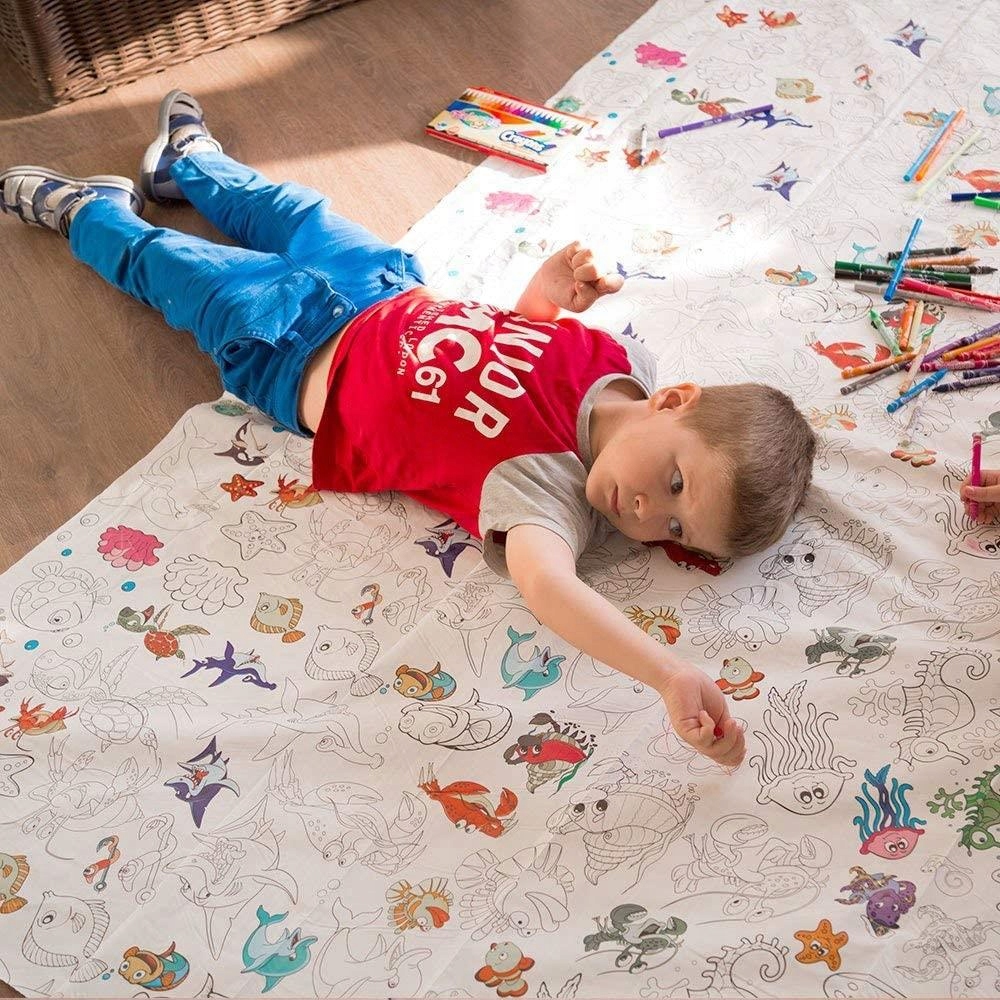 Діти для забарвлення можуть використовувати маркери, олівці, фарби або постійні маркери. Скатертина ідеальна в домашніх умовах, дитячих садках або на дні народження.