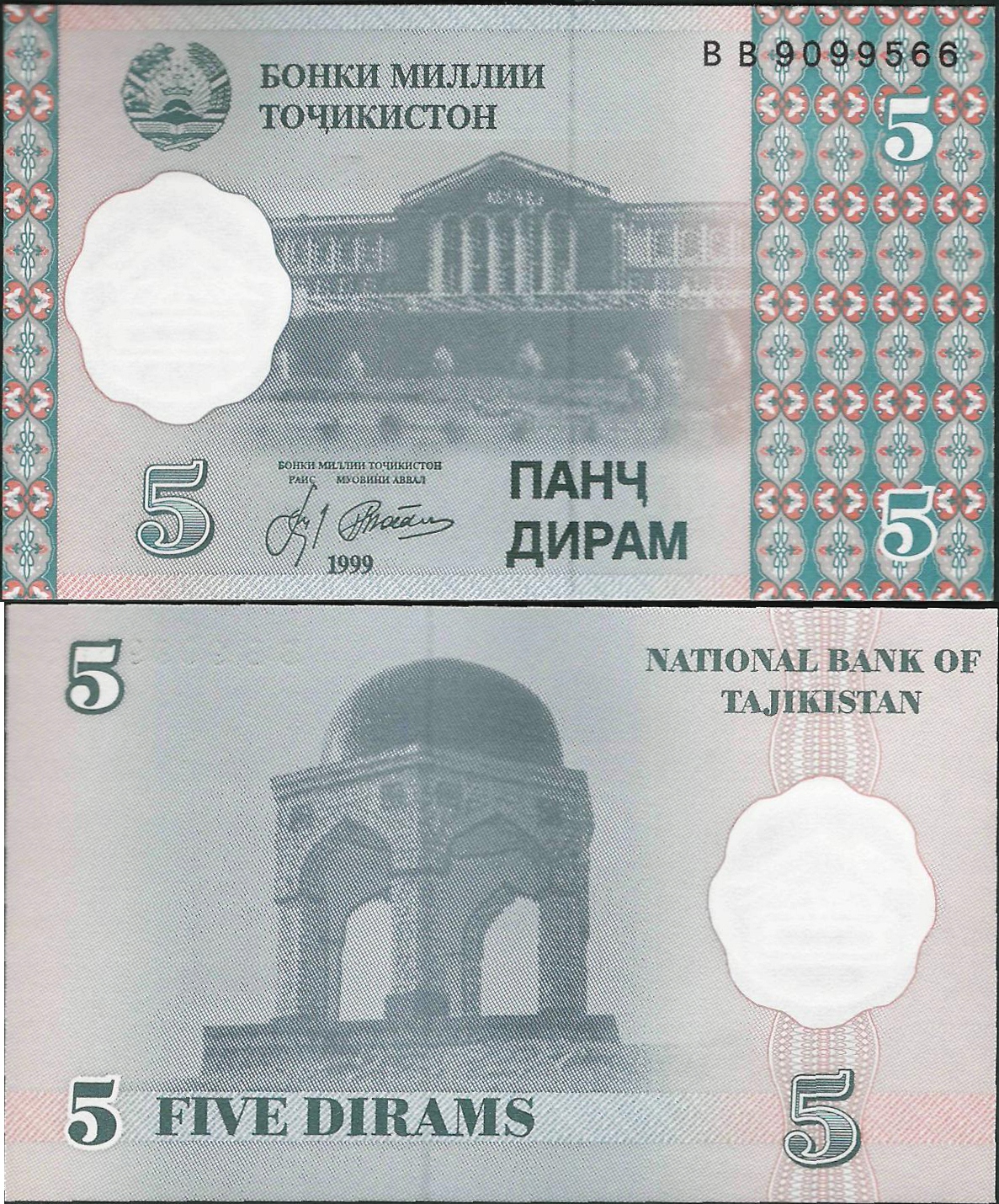 Tadżykistan 1999 - 5 diram - Pick 11 UNC