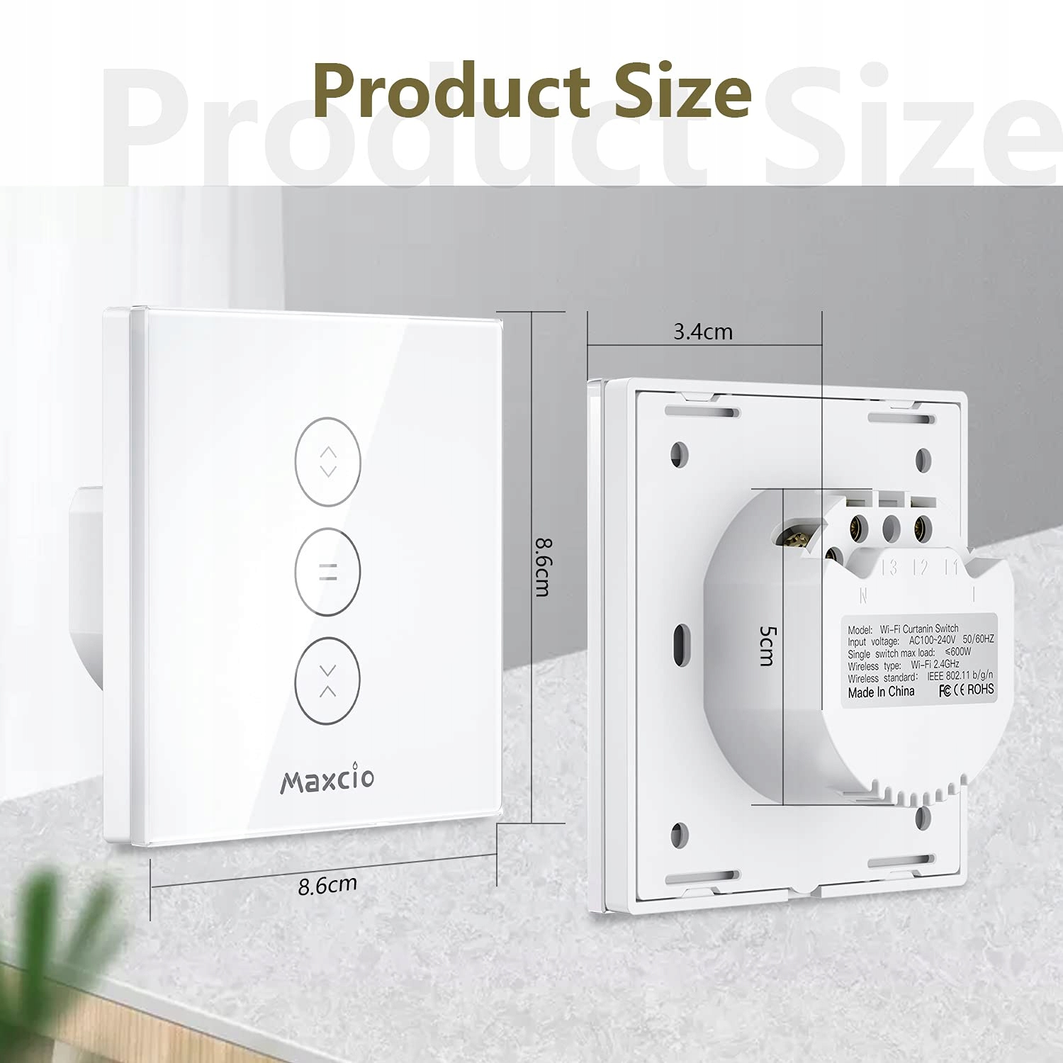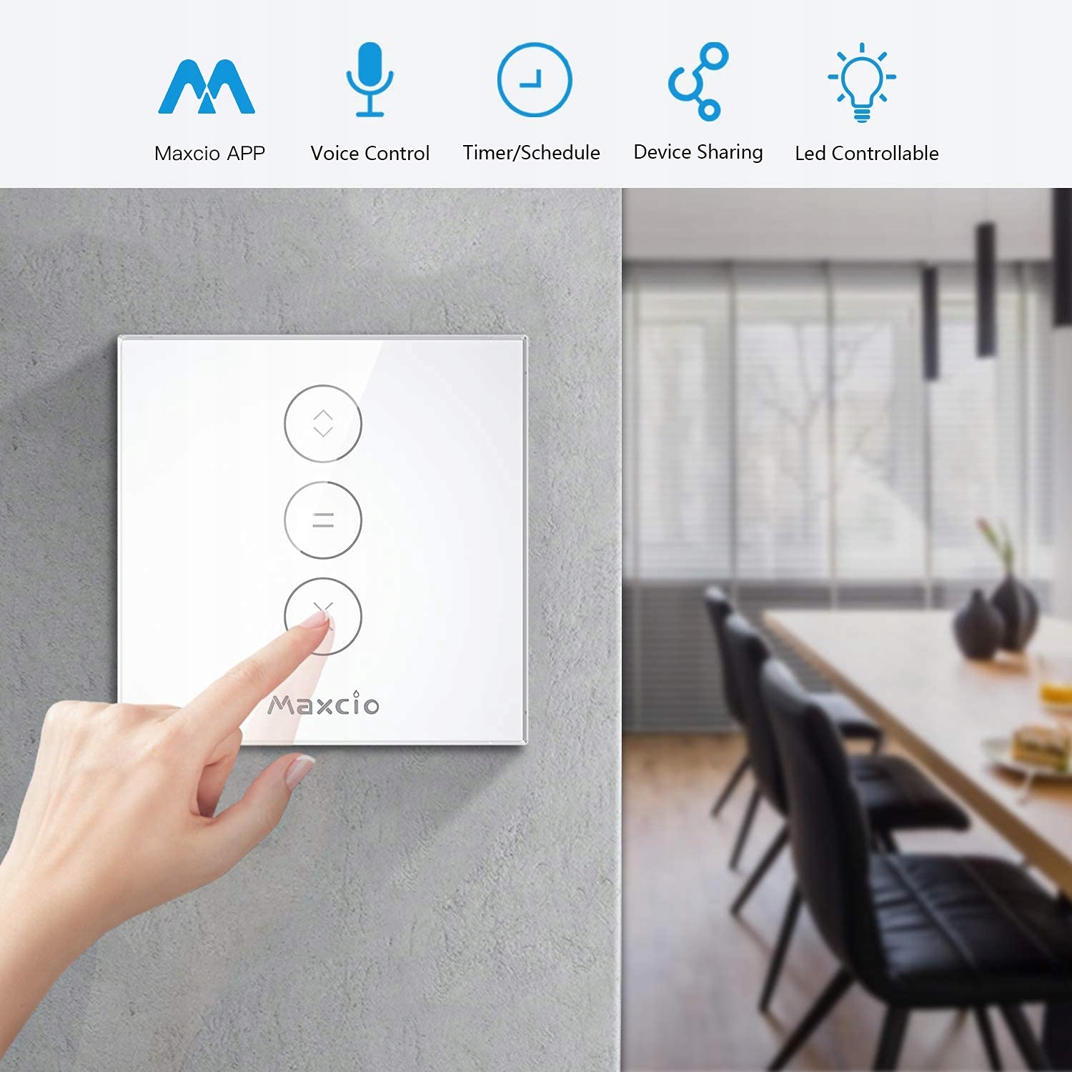 - безкоштовний додаток "Maxcio" (доступний для iOS та Android) надає можливість створювати сцени, дистанційне керування та автоматичний контроль часу рулонних штор на основі налаштування часу/таймера.