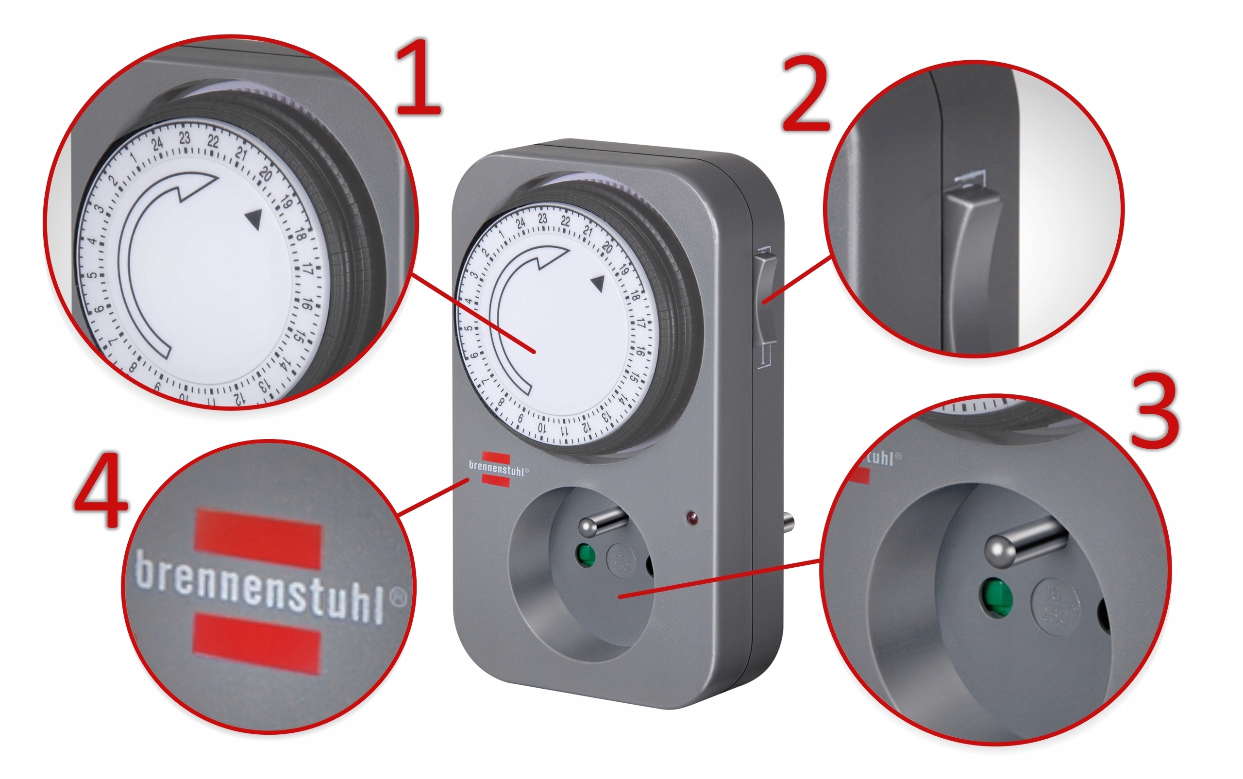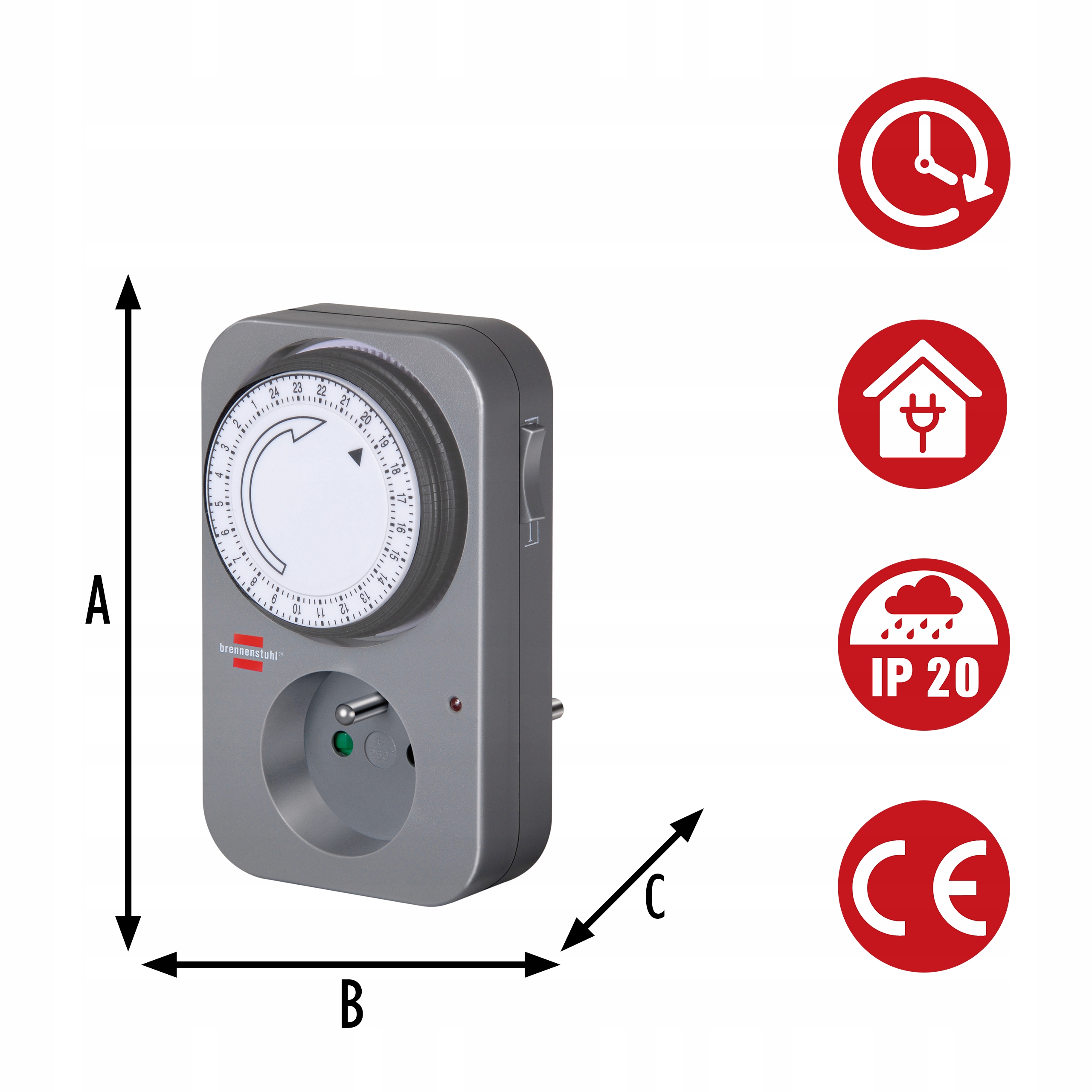 Таймер MZ 20 від Brennenstuhlмає підвищений захист від контакту та забезпечує просте та швидке налаштування часу та щоденної програми за допомогою ручки та годинникової карти.