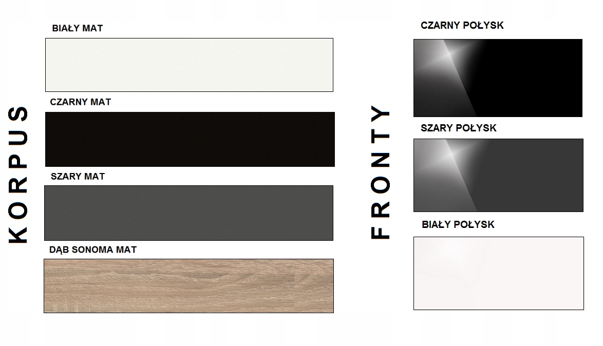 - фасади шаф виготовлені з високоглянцевої акрилової плити МДФ, обробленої приблизно 2 мм ПВХ у колір фасаду