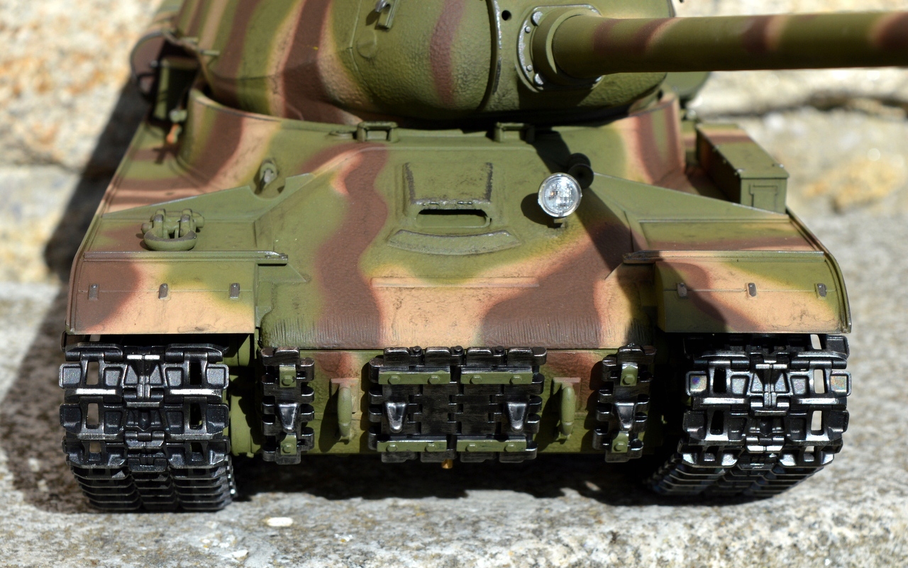 Вірна копія радянського Радянського танка з 2-ї світової війни. Ця професійна модель металевих танків у масштабі 1:16 вірний її вивченню історичного оригіналу. Мозок резервуара охолоджується вентилятором 2,4 ГГц RX-18 управління . Аудіо -звуковий модуль дбає про звукові ефекти, що імітує зйомку, рух вежі, заряджання роботи пістолета та двигуна. Пара потужних електродвигунів дбає про рух моделі . Сила витягування передається сталевими коробками передач до металевого приводу, натягу та амортизації прикріплених до металевої вісь. Атмосфера ревучих двигунів доповнюється димом з виснаженого генератора диму. Весь інтер’єр резервуару розміщується в металевій нижній ванній.