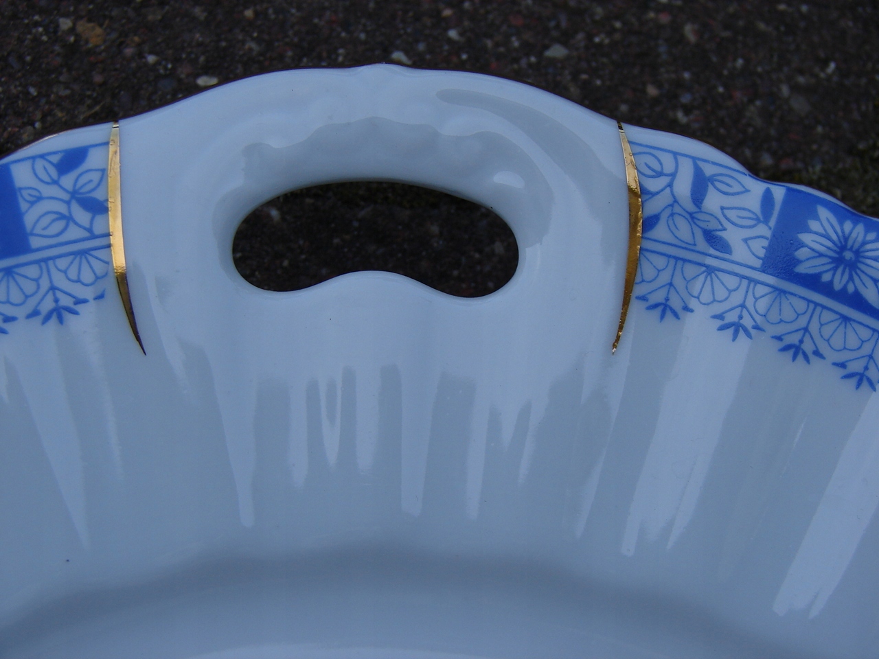 Тарілка з ручками з порцеляни, прикрашена візерунком China Blau.