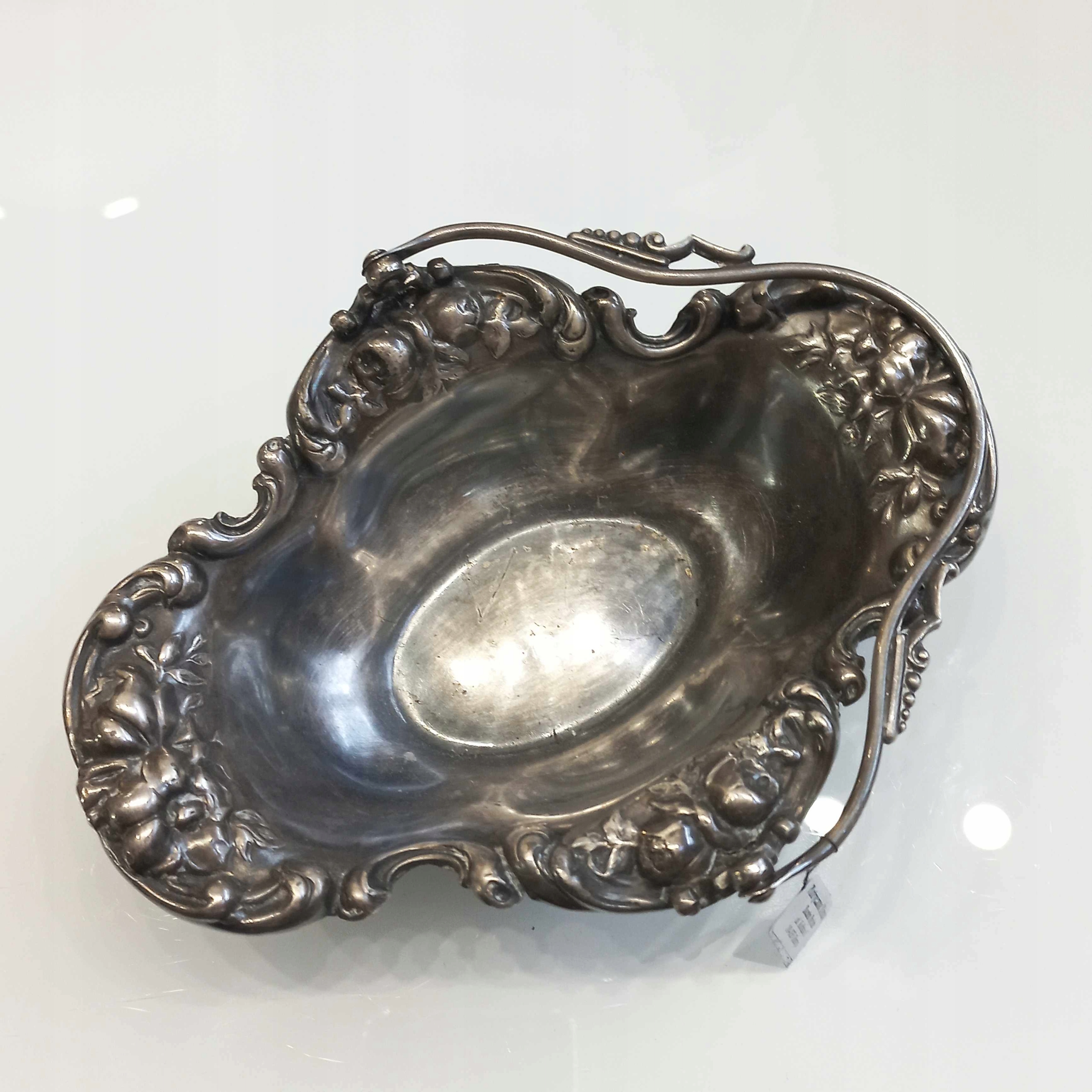 Продаєтьсястаровинна підставка для торта - корзина з ручкою, прикрашена тисненим мотивом фруктів і квітів
