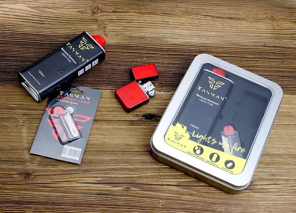 Для правильного використання запальнички ми рекомендуємо використовувати оригінальні аксесуари Tasman - бензин, каміння, гніт. Якщо запальничка повинна бути подарунком, пропонуємо придбати спеціальну подарункову упаковку з набором аксесуарів. Набори знаходяться у списку падіння вище.