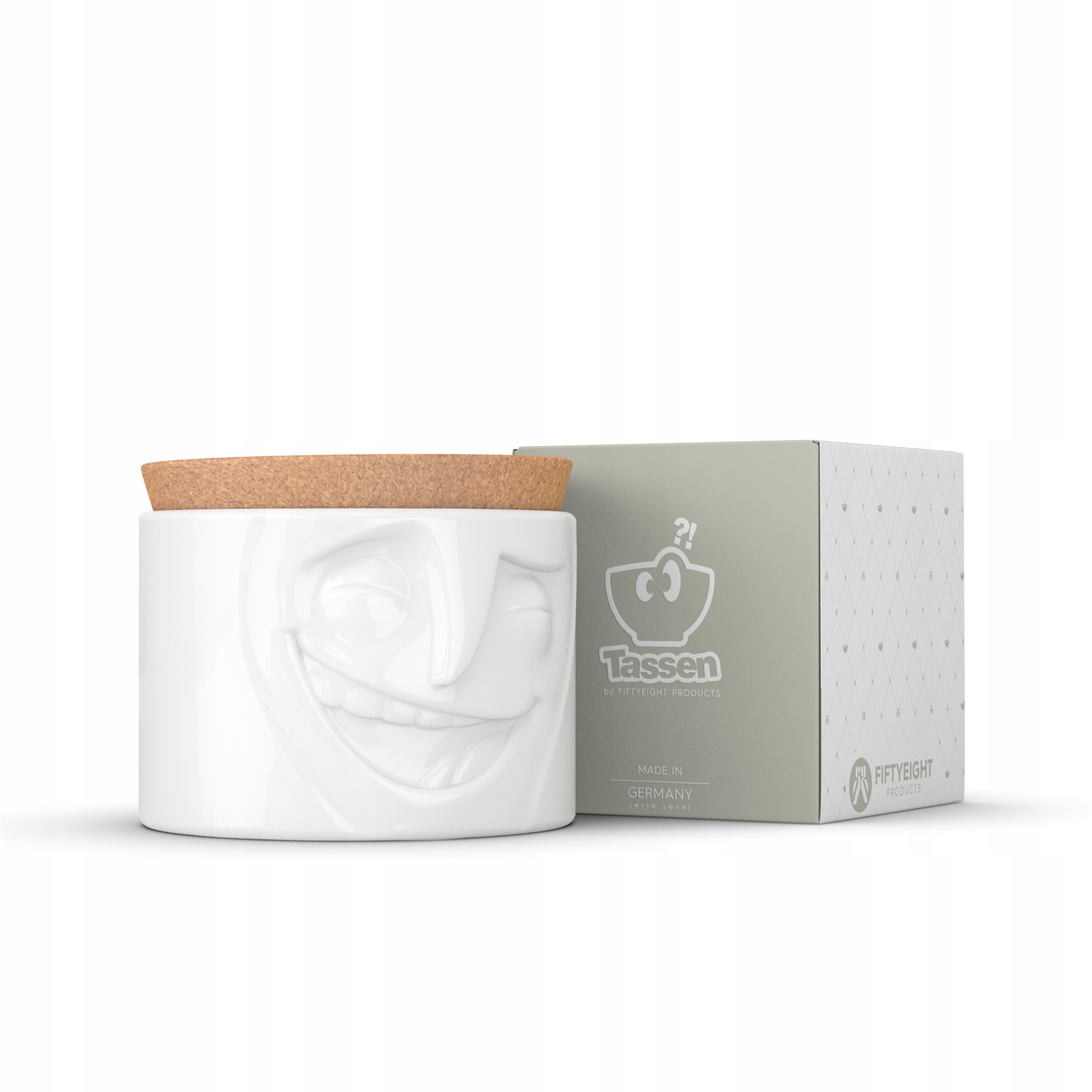 Незвичайний, дивовижний дизайн прямо з 3D анімації, ручної роботи з найякіснішої порцелянової баночки з пробковою кришкою HAPPY SMILE від креативного бренду 58Products. Банка має щільну кришку, що дозволяє зберігати не тільки цукерки та цукор, а й каву, чай та інші спеції. Всі спеції залишаються свіжими в банці з ВЕСЕЛОЮ посмішкою. Декоративна пробкова кришка дозволяє ставити одну банку на іншу. У баночку без кришки чудово помістяться столові прибори чи серветки.