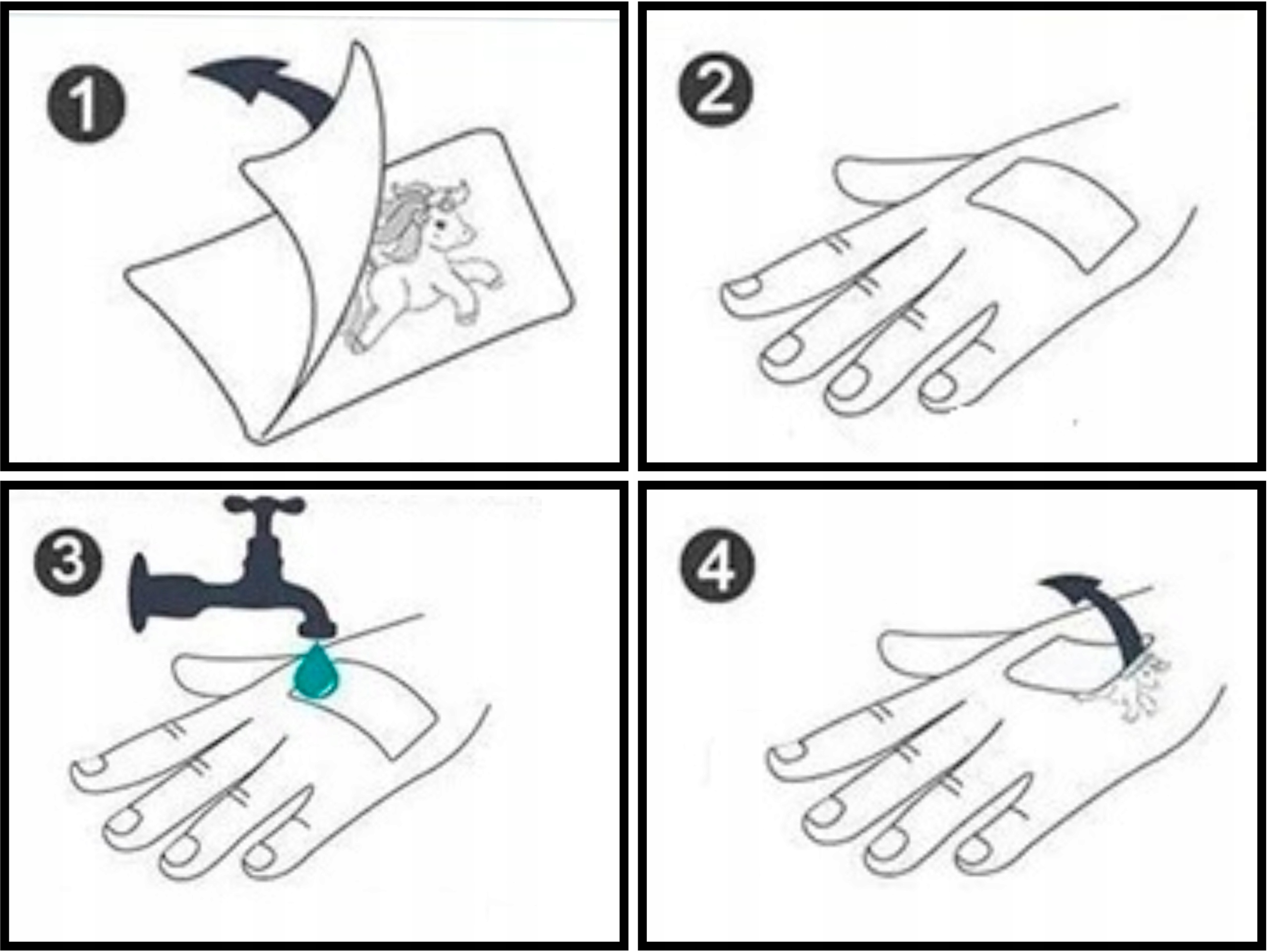 3⃣ Використовуючи вологу губку або рушник, приклейте татуювання до шкіри протягом декількох секунд.