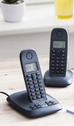 Цей подвійний бездротовий телефон із дуже сучасним виглядом дуже простий у використанні.