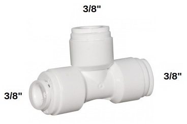 трійник з трьома роз'ємом 3/8 дюймів для з'єднання шланга з тим самим діаметром. Використовується в ефективних системах очищення води, в тому числі в інвертованому осмосі (в основному напівпромислові версії).