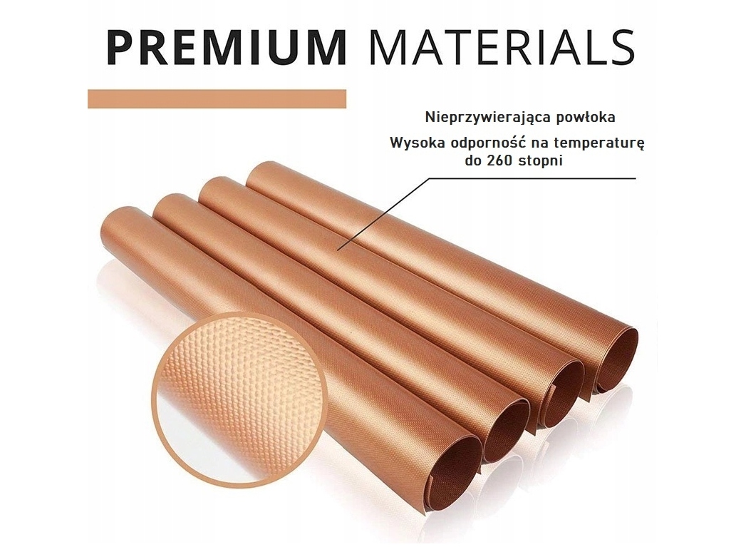 Килимок виготовлено з міцної та гнучкої склотканини, покритої PTFE. Абревіатура you розшифровується як тефлон, матеріал, який має справді чудову термостійкість.