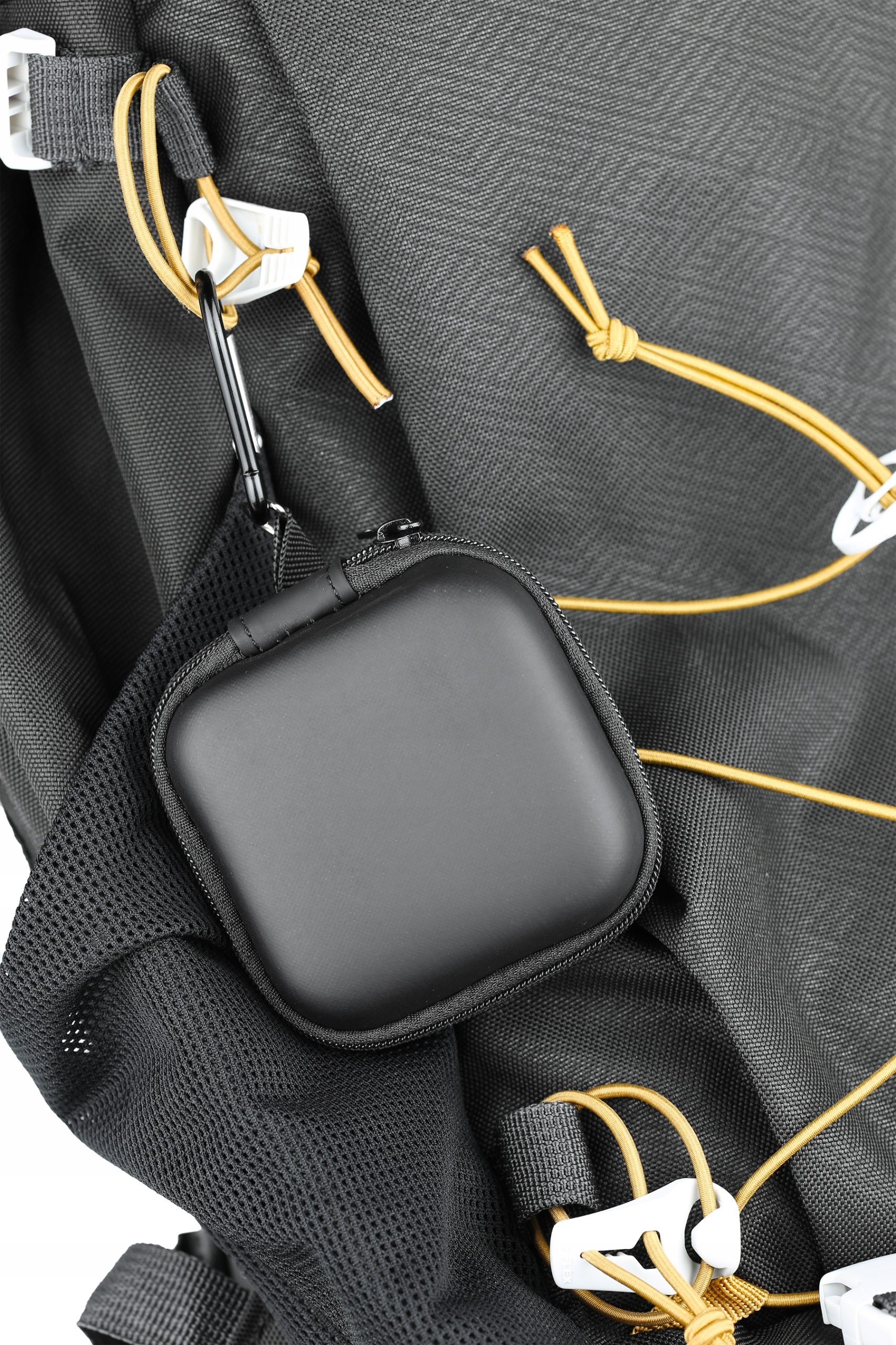 Жорсткий футляр захистить ваші лінзи від пошкоджень. Він оснащений карабіном, який дозволяє прикріпити його, наприклад, до рюкзака або петлі для брючного ременя, а загальна вага набору приблизно 65 грам становить носіння аксесуара непомітне.