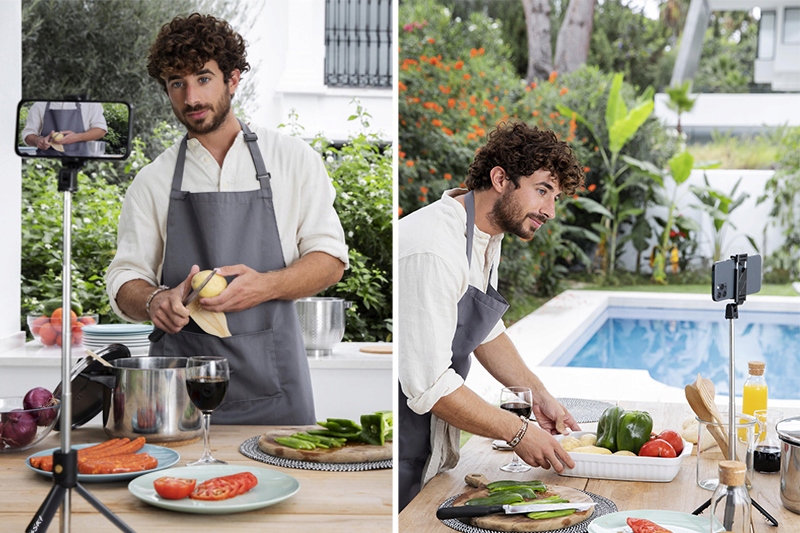 Якщо, наприклад, під час приготування їжі вам потрібна підставка для телефону, щоб переглянути відеопосібник або просто показати рецепт, штатив допоможе працює ідеально. Просто розгорніть ручку палиці, встановіть відповідну висоту та ідеальний кут, і готово.