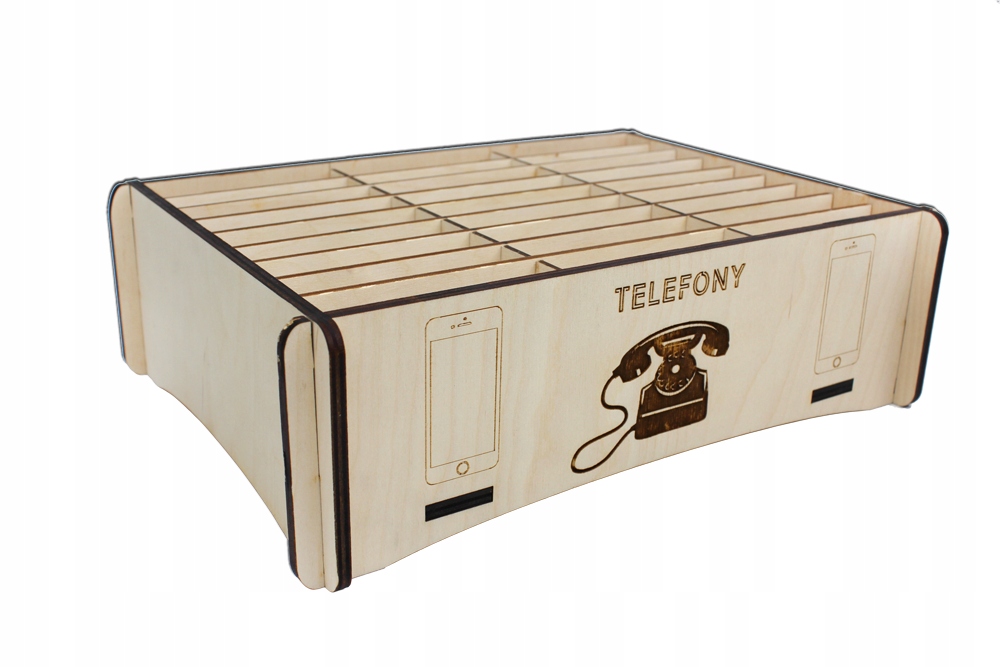 Наш тел. ящики оснащені 27 відділеннями, завдяки чому в них легко розміщуються мобільні пристрої кожного учасника класу. Виготовлений з дерев'яної фанери, він має елегантний зовнішній вигляд і довговічність, що означає можливість тривалого використання. Ми пропонуємо можливість додати гравірування (наприклад, номер класу, ім’я вчителя чи назву школи), що гарантує, що нашими продуктами зможуть користуватися всі бажаючі. Гравірування є додатковим платою b>, який можна побачити в нашій іншій пропозиції (Коробка з відділеннями для телефонів + GRWAER).