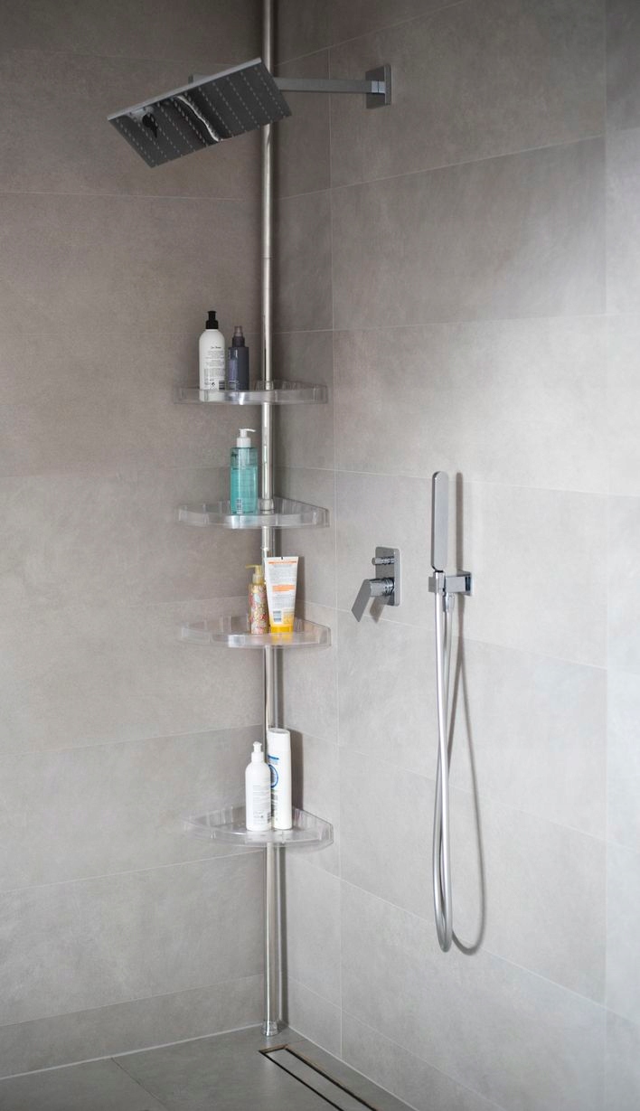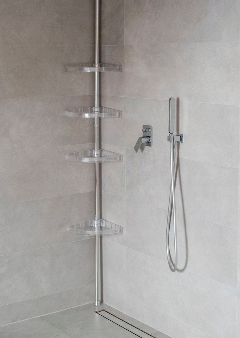 Діапазон регулювання телескопічної полиці у ванній кімнаті від 80 см до 290 см, 4 рівні, діаметр стрижня 27 мм (алюміній), , не вимагає буріння