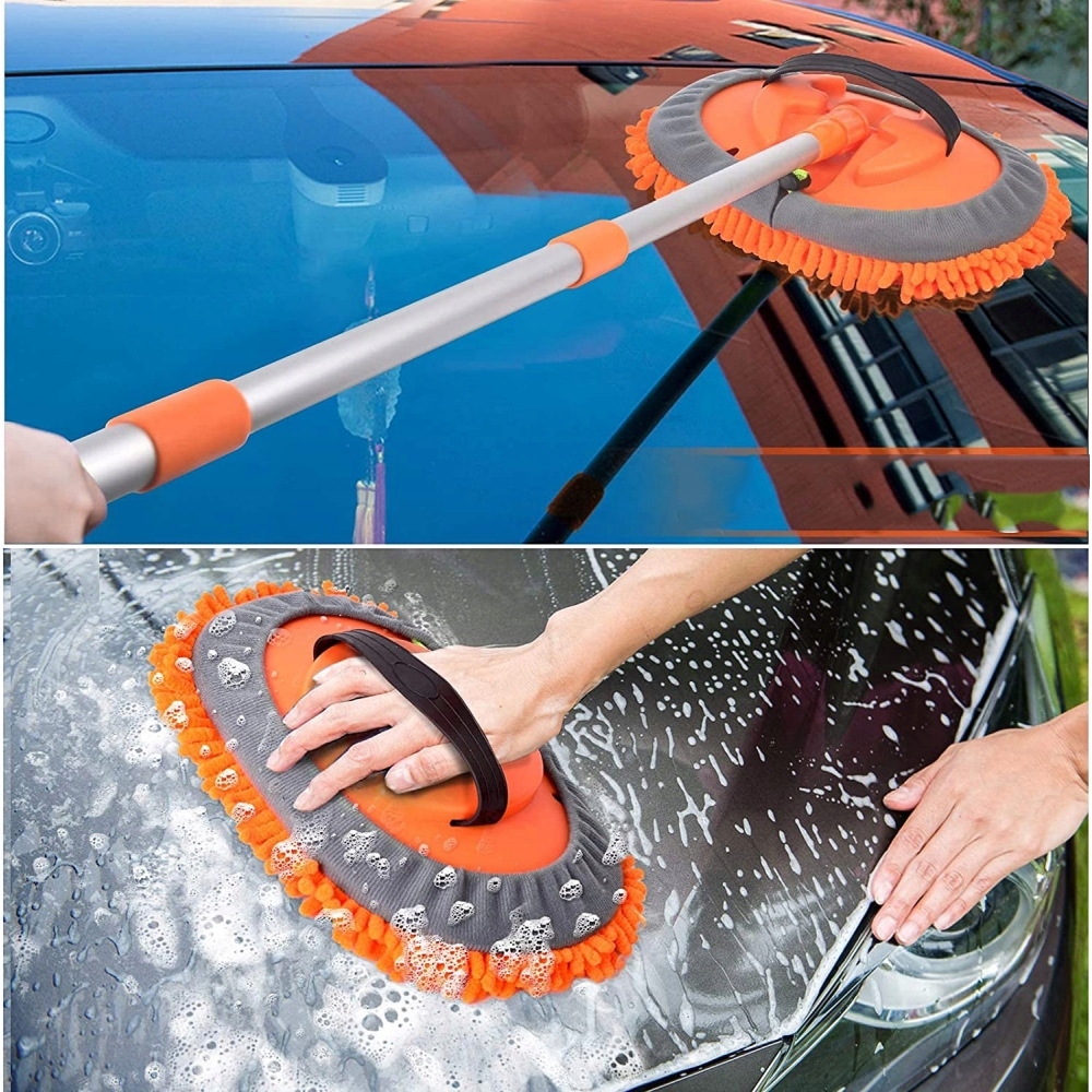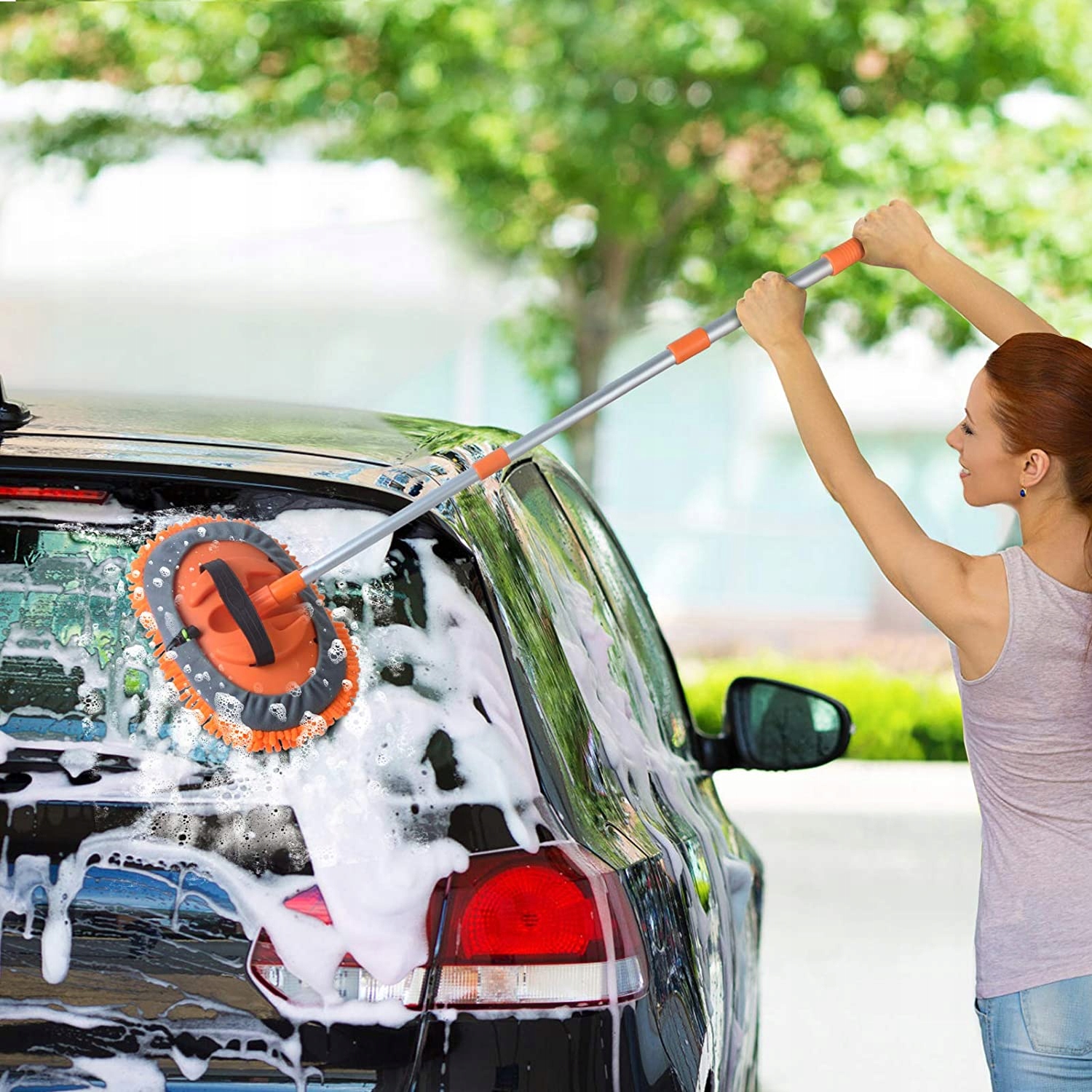 ▶ Наддовга ручка + повне очищення: подовжена щітка для миття автомобіля довжиною 157 см легко дістанеться до даху автомобіля та інших високих місць, тож вам не доведеться багато рухатися. Телескопічна конструкція та регульована на 180 градусів голівка швабри дають вам більше гнучкості під час миття автомобіля та гарантують, що ви можете легко виконати повне прибирання. Ця ідеальна швабра для миття автомобіля може ефективно заощадити ваш час!