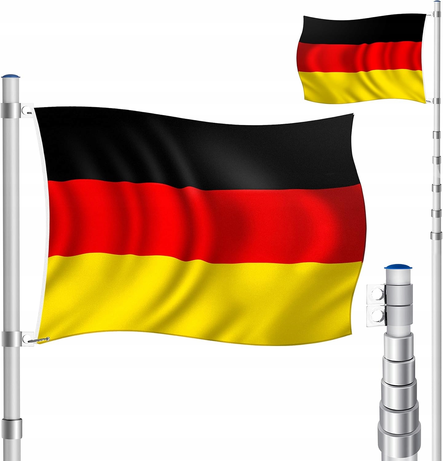 ТЕЛЕСКОПІЧНА ЩОГЛА ДЛЯ ПРАПОРА 6,3М З ПРАПОРОМ НІМЕЧЧИНИ ОБЕРТОВИЙ АЛЮМІНІЄВИЙ