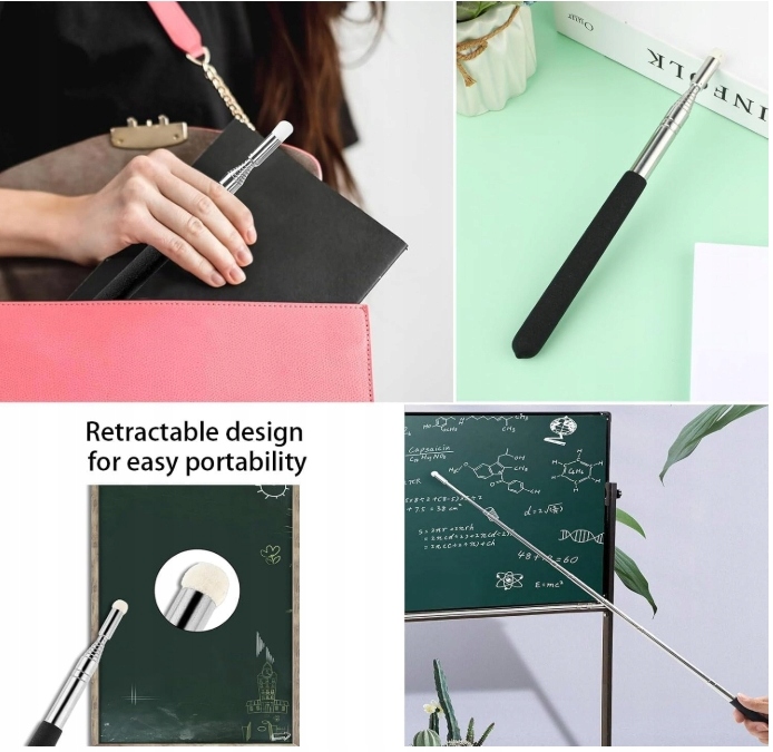 ➡ надавали стрижні телескопі, що вказує на цей незамінний інструмент для викладачів, тренерів, викладачів або туристичних путівників. Виготовлений з високоякісної нержавіючої сталі, вона забезпечує довговічність та зручність використання. Завдяки телескопічній конструкції ви можете легко відрегулювати довжину стрижня (до 100 см), а після складання він займає лише 21 см, що полегшує сховище. Ручка проти ручки та індикатора фетру гарантують комфорт та точну індикації. Набір також включає знімний кабель, який заважає впасти, що збільшує безпеку.