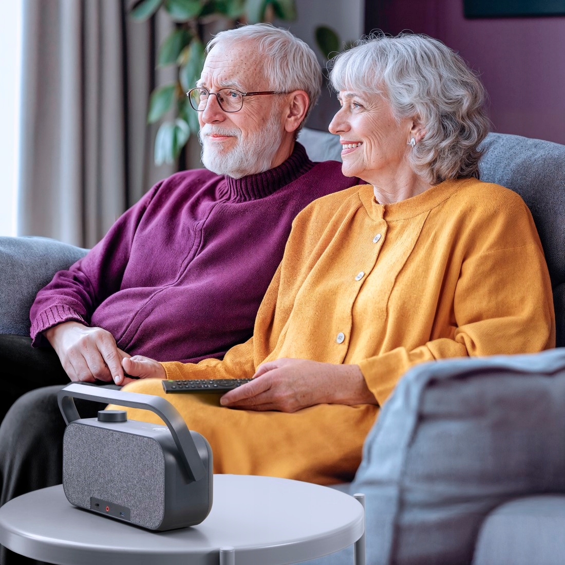 Портативна колонка з зарядною станцією. Завдяки стереодинаміку телевізора ви можете дивитися телевізор і слухати музику з найкращим звуком на частоті 2,4 ГГц без затримки в часі та без шуму — ідеально для тих, хто любить гучніший звук.