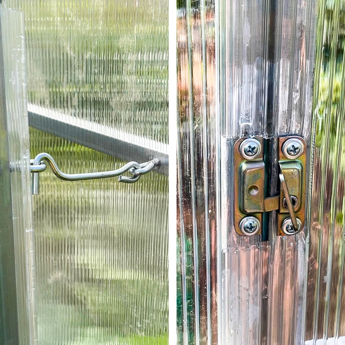 4. Посіви захищені від високих температур - конструкція забезпечує достатню циркуляцію повітря завдяки двом парам дверей і вікон. Залежно від ваших потреб ви можете нахилити саме вікно або відкрити двері повністю. Під час дощу, грози та сильного вітру рекомендуємо закривати двері та вікна, щоб захистити теплицю.