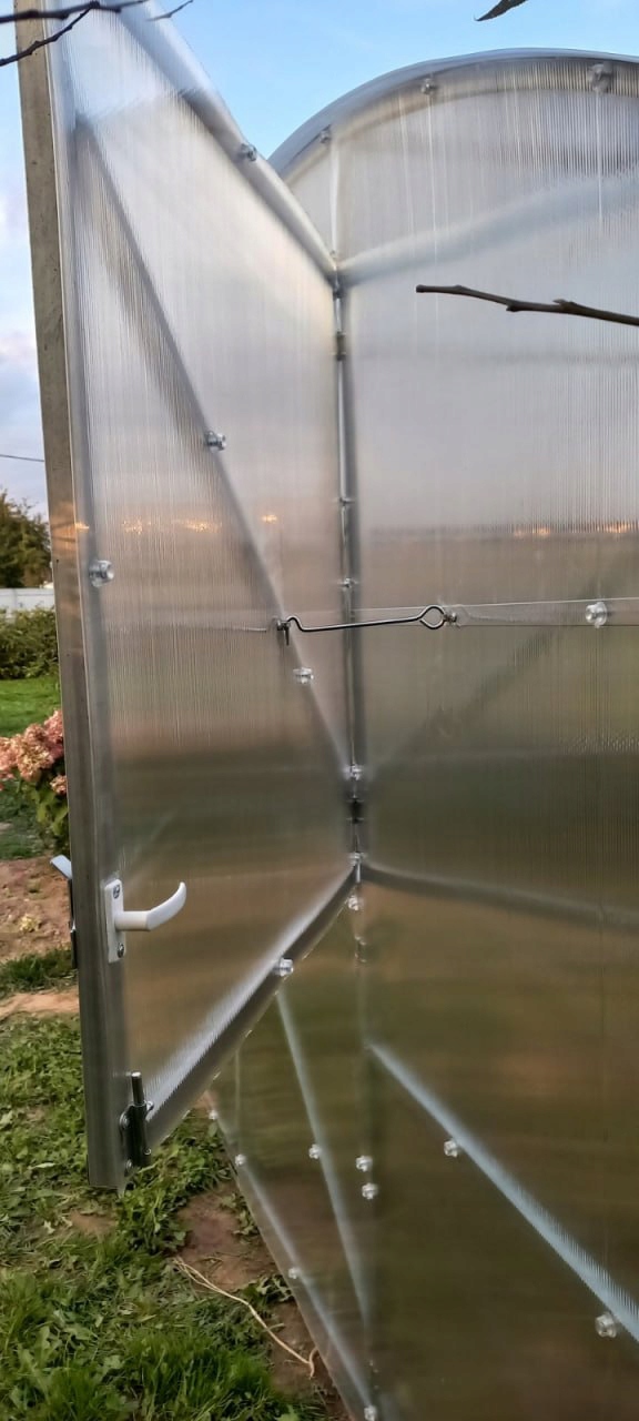 - Конструкція дверей з двох частин (верхня та нижня частини дверей відкриваються незалежно одна від одної) забезпечує зручне використання та додає можливість додаткового провітрювання теплиці. li>