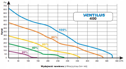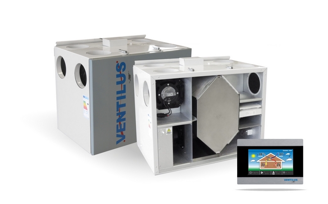 - Фільтрація- Агрегати 400 і 600 стандартно оснащені 2 фільтрами класу G4 на лінії припливу та витяжки та 1 фільтром класу M5 на припливному повітрі. Два фільтри Ultrakas 4 використовуються в агрегатах Ventilus 301, 401, 1200. Додатково доступні фільтри класу F7 і M5 для блоків 400 і 600.