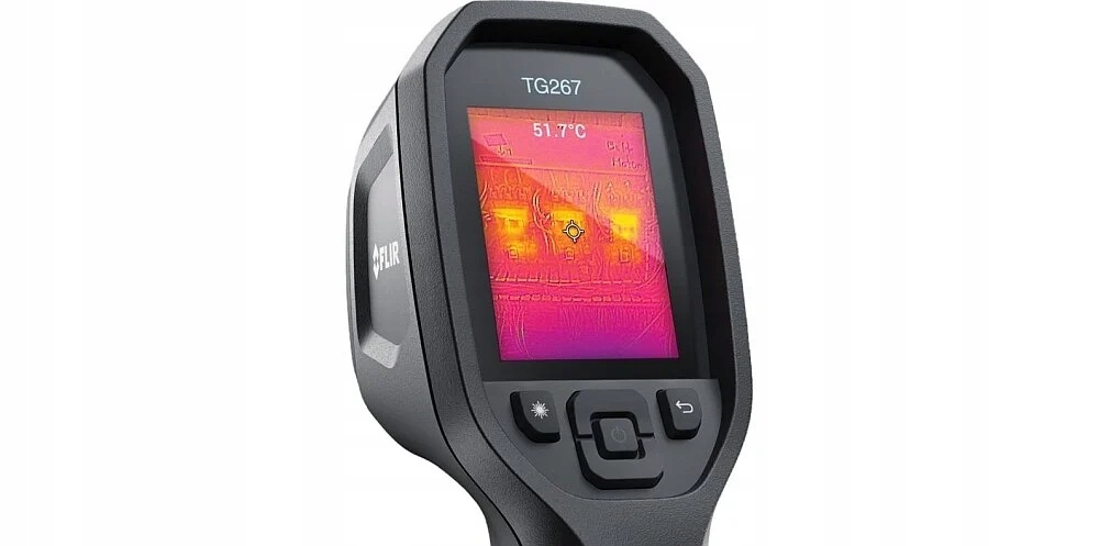 Flir TG267 Теплова камера з візуалізації була створена для скорочення часу діагнозу та забезпечення найбільшої точності вимірювань. Він оснащений лазерним індикатором, має роздільну здатність 160х120 і виявляє температуру від -25 до 380 градусів Цельсія. Зображення, створене нею, видно на високоякісному 2,4-дюймовому дисплеї, і завдяки простому операції, воно дозволить вам працювати в комфортних умовах, які ви виконуєте свої завдання.