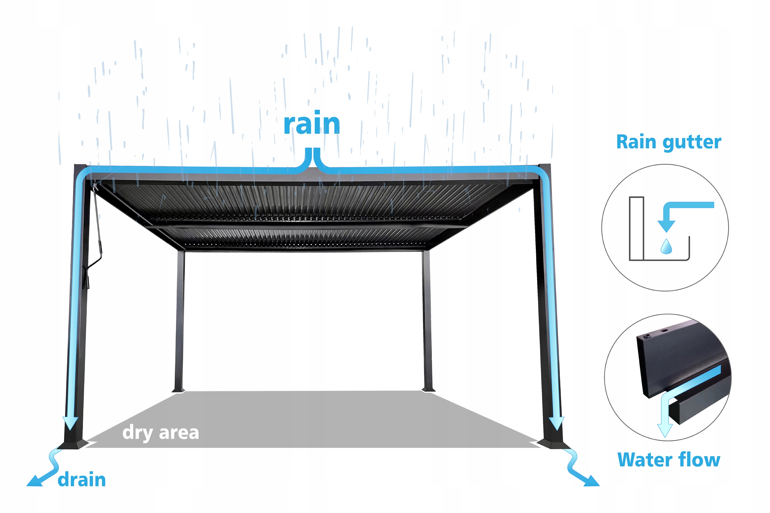 Бермео 400 х 300 см алюмінієва пергола - це міцна і елегантна конструкція, ідеальна для створення тінистого місця відпочинку в саду. Виготовлений з пофарбованого порошком алюмінію, він стійкий до погодних умов та корозії. Він має регульовані панелі на даху, які дозволяють контролювати систему сонячного світла та водного воду. Прості у встановленні, стабільні та естетичні, ідеально поєднуються з різними стилями садів.