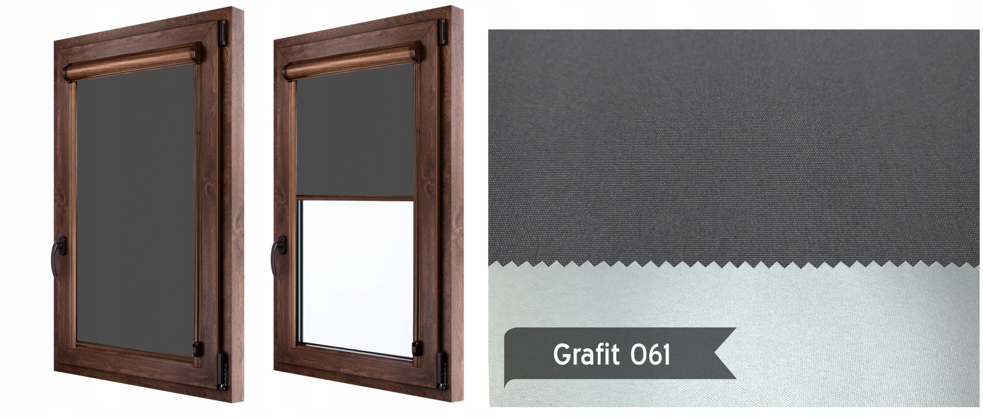 - Бічні напрямні з ПВХ* з монтажною стрічкою темного горіха (допуск розміру 0,5 см.)