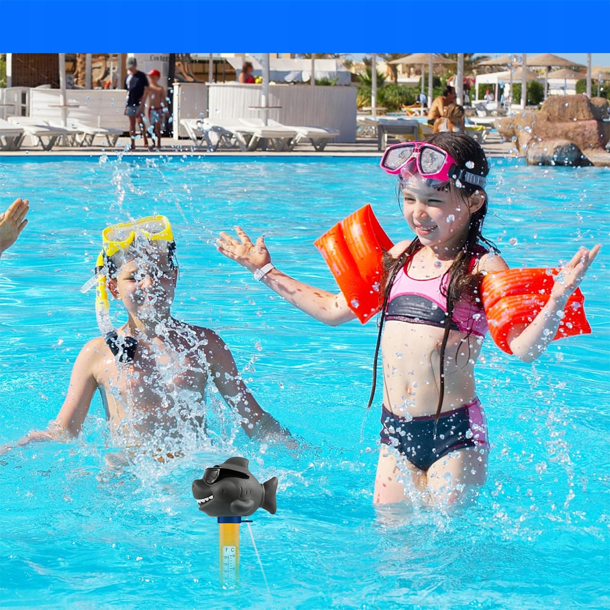 Вишуканий дизайн: Термометр басейну з мотивом акули вгорі барвистий і привабливий для всіх дітей, які люблять плавати. Його можна використовувати не лише для вимірювання температури в басейні, але і як кумедна іграшка для ванни.