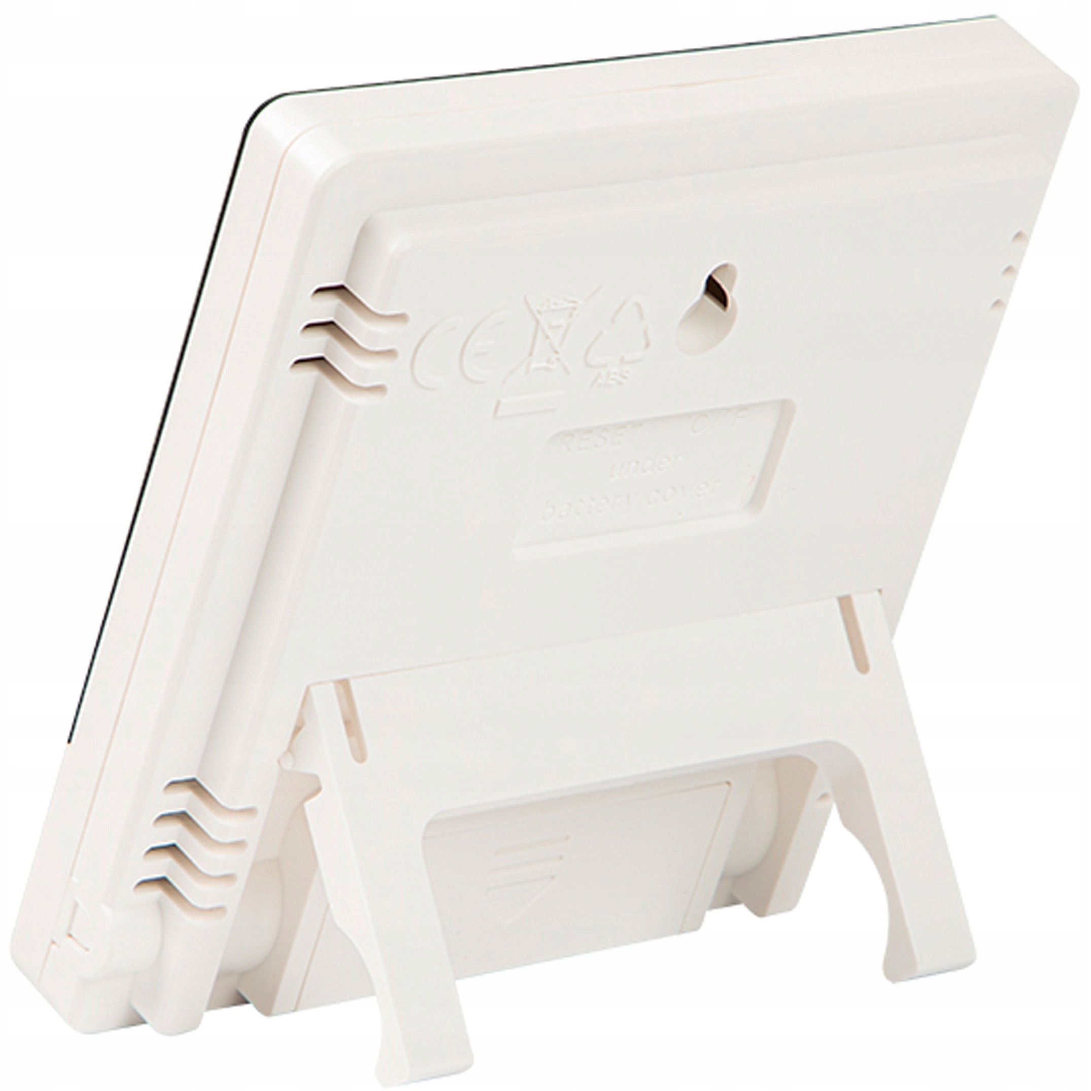 - У задній частині вбудовано опору метеостанцію, дозволяючи розмістити метеостанцію без необхідності спиратися на неї на інші предмети.