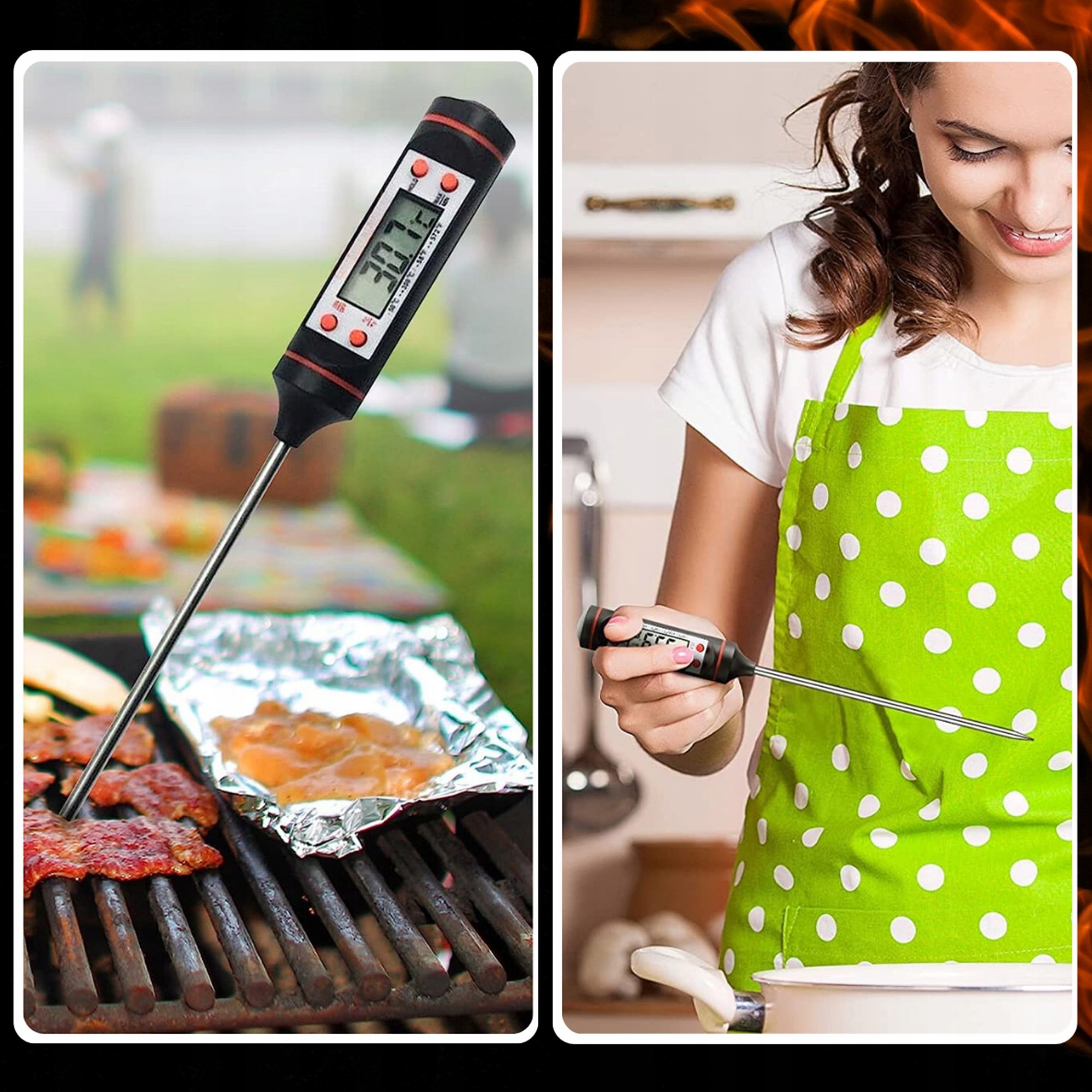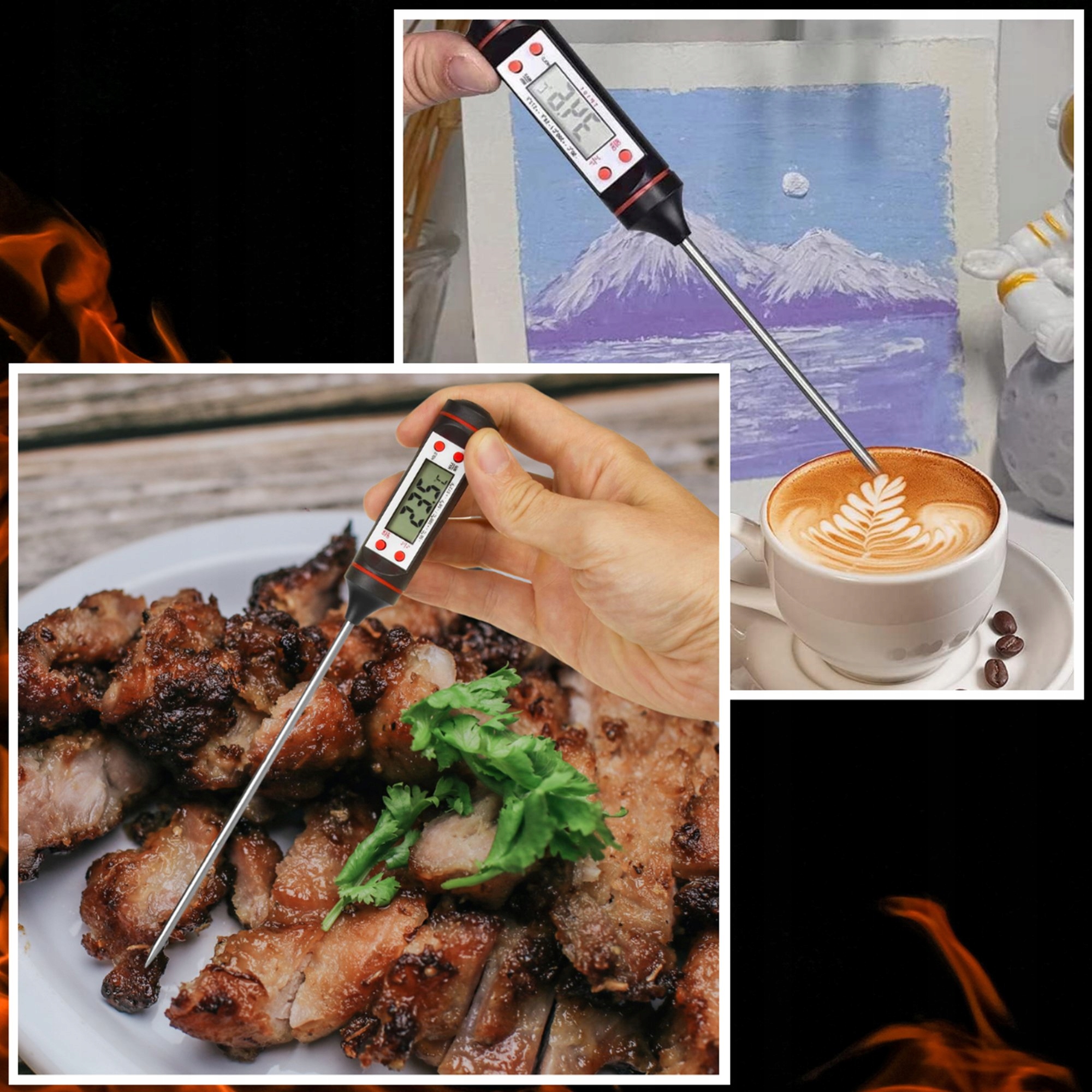 Електронний штифтовий термометр ідеально підходить для вимірювання температури м'яса, тіста, молока, чаю, води та ін. Термометр дозволяє зручно контролювати температуру будь-якого продукту. Ідеально підходить, коли ви не хочете підгоріти/недопекти свій пиріг чи печеню.