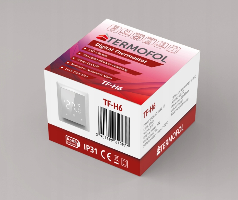 Терморегулятор має ступінь захисту IP31, що дозволяє встановлювати пристрій у ванній кімнаті. Цей параметр дуже важливий, тому що більшість доступних пристроїв мають ступінь захисту IP20 і такі пристрої не можна встановлювати у ванній кімнаті