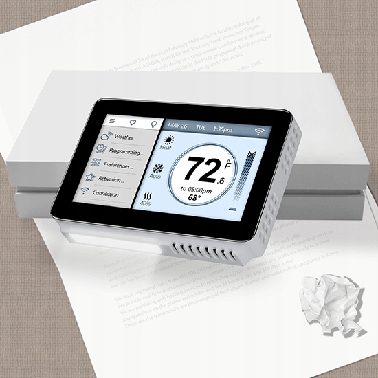 Сенсорний WIFI контролер для примусового опалення, фанкойлів і теплових насосів VINE TJ 919 E. Підтримує 2 рівні нагріву, 1 рівень охолодження. Працює з системами IOS і Android через програму VINE.