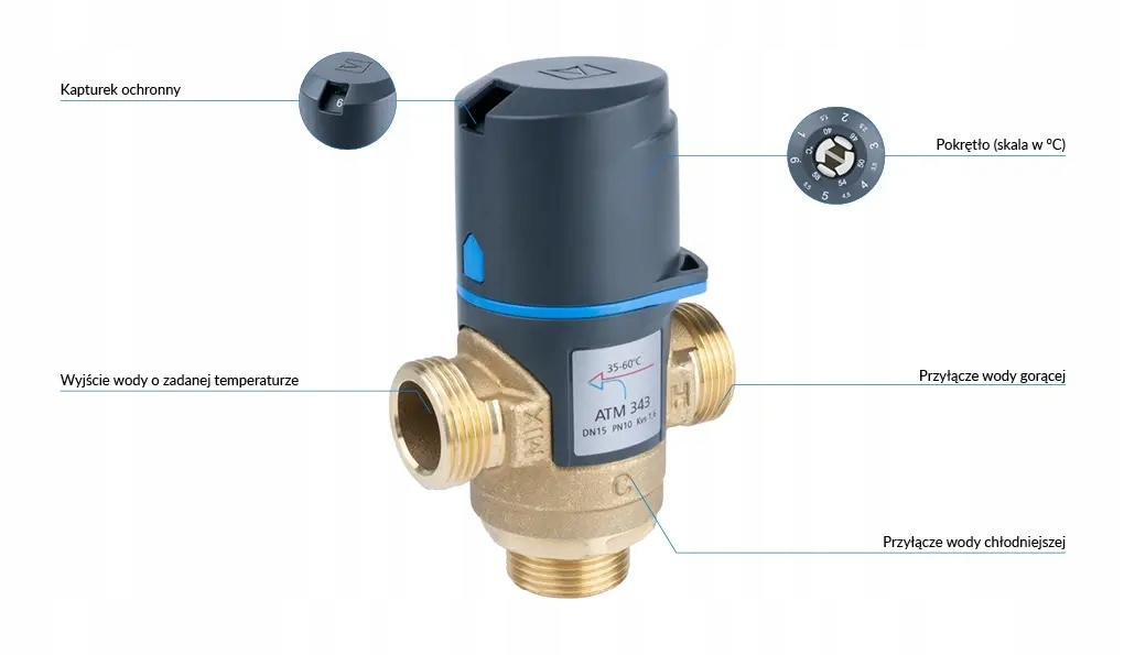 ⭐ Підтримує постійну встановлену температуру води за клапаном.