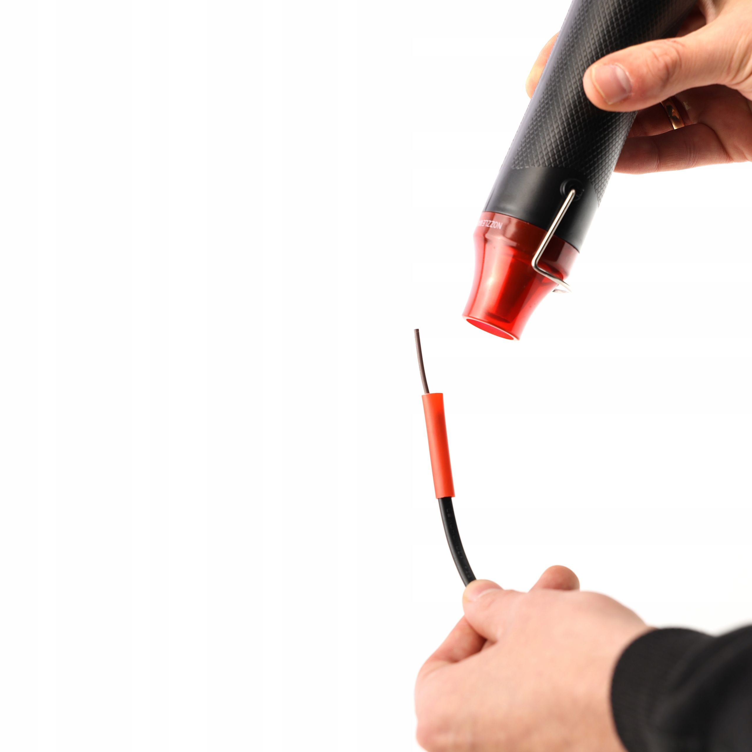 ✔️ Нагрівання: Направте джерело тепла (термоусадочний пістолет, фен) на термозбіжну трубку. Не забувайте тримати джерело тепла на певній відстані від трубки та не нагрівайте одну ділянку надто довго, щоб уникнути перегріву.