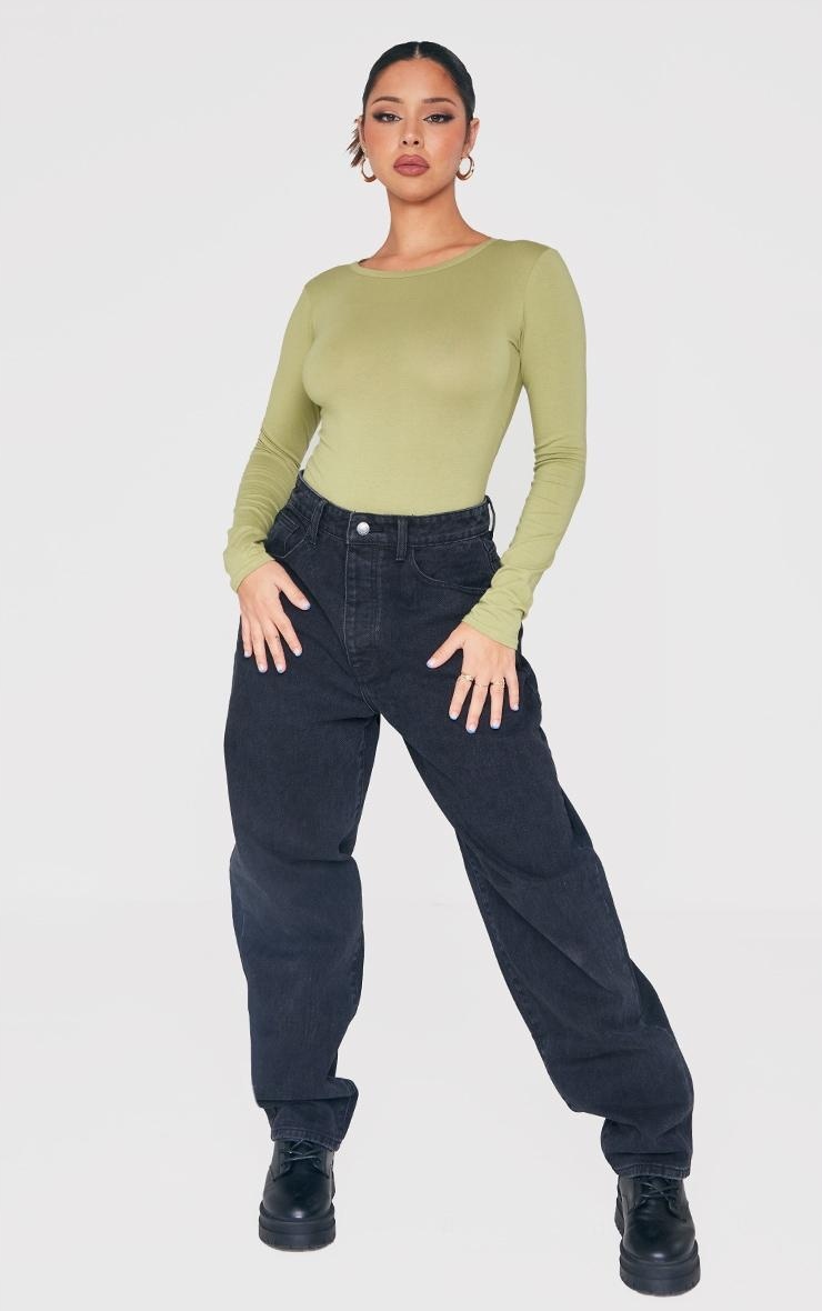 Тіло з довгими рукавами класичний оливковий гладкий PrettyLittlething 34