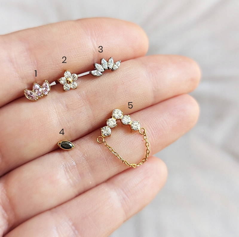 ТИТАНОВА СЕРЕЖКА-ЛАБРЕТ ЗОЛОТА КВІТКА ВУШКА СВІТРАЛЬ ЦИРКОНІЙ 1,2/6
